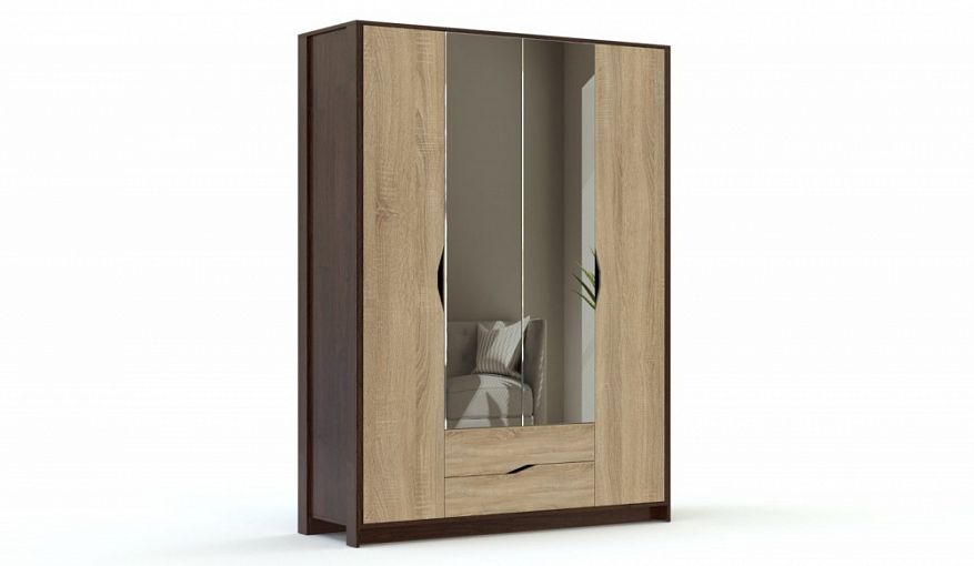 Распашной шкаф Доминика 5 BMS дополнит другие предметы спальной серии или может самостоятельно использоваться в современном интерьере. Оригинальная модель с широкими опорами и накладками на боковинах выполнена из износостойкой ламинированной плиты в коричнево-бежевой гамме и дополнена зеркалами. Помимо распашных отделений с бельевыми полками и штангой четырехдверная модель оборудована двумя выдвижными ящиками с ручками-вырезами. Купить распашной шкаф Доминика 5 BMS для удобного хранения вещей вы сможете в нашем интернет-магазине.