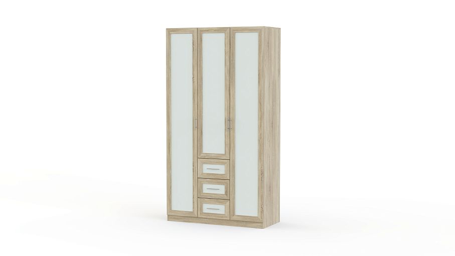 Распашной шкаф Крона 15 BMS отличается характерными для всей серии надежностью, вместительностью и элегантным дизайном. Модель выполнена в контрастных тонах светлой гаммы и органично впишется в интерьер спальни или прихожей. За тремя распашными дверцами с рамочными фасадами – два платяных отделения и центральная секция с полками и выдвижными ящиками для мелочей. Купить распашной шкаф Крона 15 BMS и оборудовать эффектную и функциональную комнату вам поможет наш интернет-магазин.