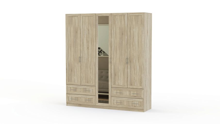 Шкаф большой, вместительный. Покупали для двух сестричек. Получилось каждой по своему шкафу, с выдвижными ящиками. Все вещи замечательно теперь там живут. Еще большой шкаф с полками за зеркальной дверцей. Девочкам очень понравилось! Качество среднее. Есть несостыковки, дырки к ручкам не совсем походят, есть зазоры. Еще заказывали дополнительные 2 полки, а их нет. Собирали сами. Цвет действительно не такой как на фото. Но нам подходит.