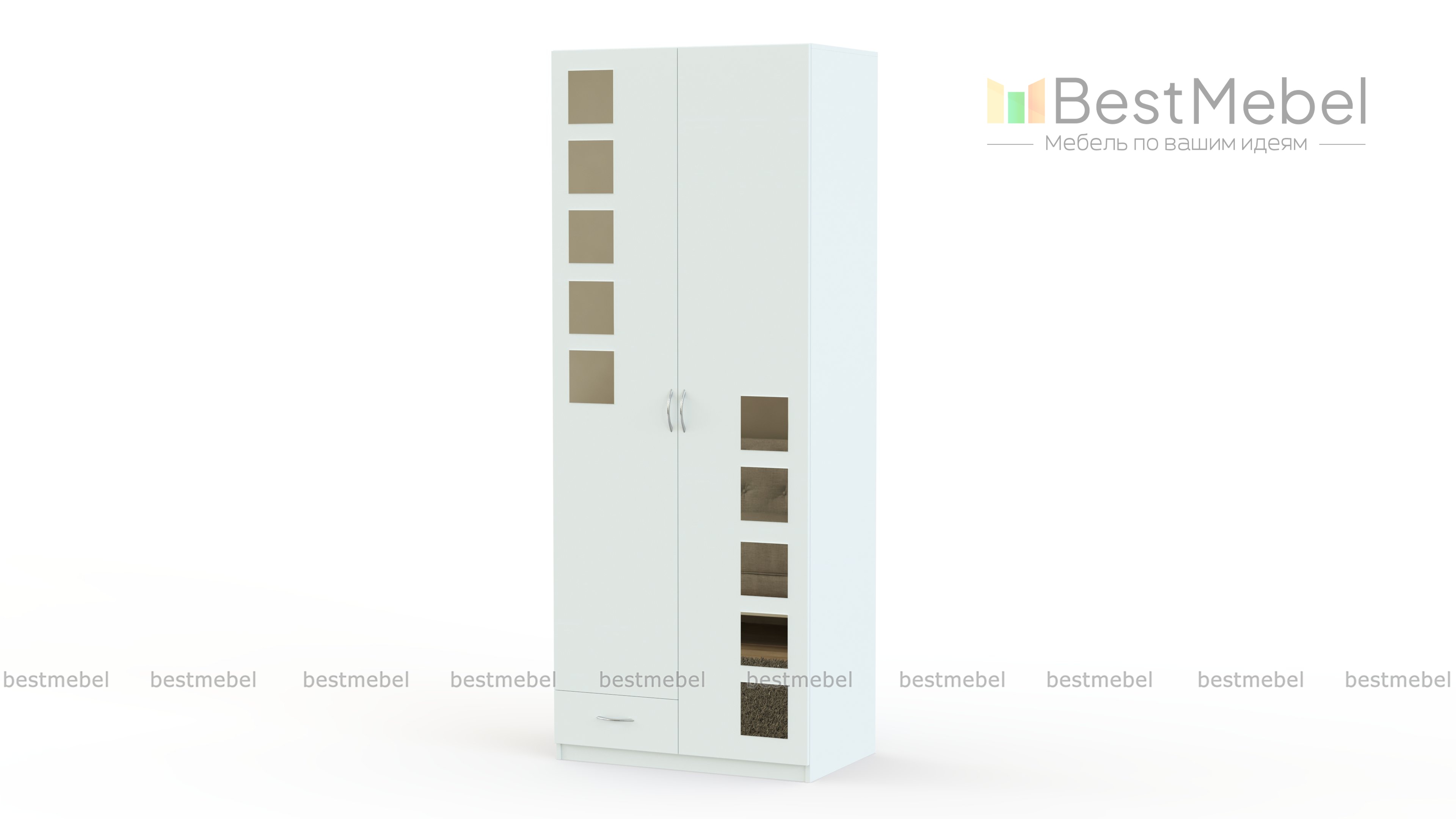 Распашной шкаф Паулина 27.3 BMS – это двухдверная модель с платяным отделением, дополненная в нижней части выдвижным ящиком для мелочей. Удобный доступ к вещам обеспечат традиционные распашные дверцы, а залогом долговечности станет надежная фурнитура. Шкаф лаконичен по форме и выполнен в светлых тонах, фасад декорирован квадратными зеркальными накладками. Купить распашной шкаф Паулина 27.3 BMS, уместный в любой из помещений дома, приглашаем недорого в наш интернет-магазин.