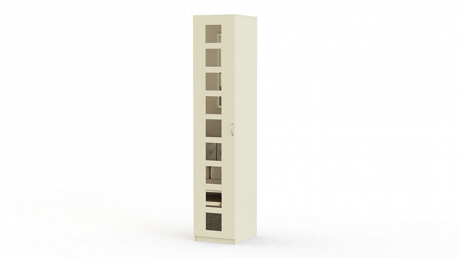 Требовался узкий шкаф-пенал, чтобы вписался в уже готовый гарнитур на новом месте жительства. Вышло то, что надо. А чтобы шкафчик не выглядел скучно, выбрали модель с декоративными зеркалами.