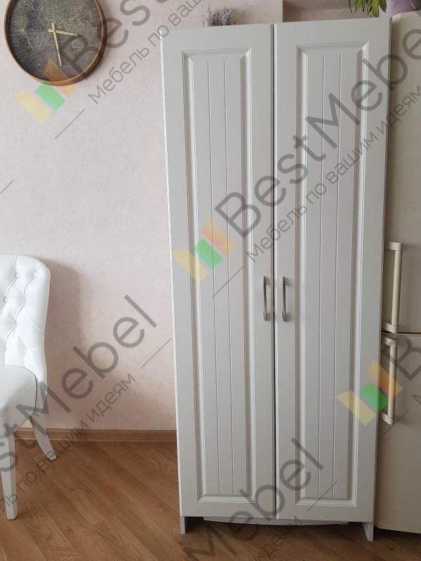 Заказ 00000681635, изделие ЭСКИЗ №00000681635 Распашной шкаф Прага 902 BMS (900х2065х500) (Платяной отсек (станд. 2))Брали этот шкаф в детскую. Выбрали покрытие фасадов «структура дерево белый» по фото и не прогадали – выглядит очень реалистично, реально как будто массив дерева покрасили в белую эмаль. Корпус серый.Доставка быстрая – меньше, чем за неделю, до подъезда в Воронеже, бесплатно. Детали шкафа из МДФ и ЛДСП упакованы в картонные коробки, фасады между собой проложены пенной плёнкой. Штанга была в стейтч-плёнке, куча слоёв. Фурнитура лежала в черном пакете, все детали под расчёт – всего хватило, лишних не было. Сколов и прочих дефектов не было.Сборка лёгкая, несмотря на непошаговую инструкцию. Просто на каждой детали были наклейки (при сборке мебели других производителей приходилось рулеткой замерять детали, чтобы понять, где какая). Все детали между собой крепятся одинаково – евровинтами (конферматами), не важно, в каком порядке. Фурнитура в базовой комплектации не дешевая – вся металлическая. Пластиковые только подпятники, чтобы шкаф скользил по полу, когда его двигаешь. Петли, которые были в комплекте, прочные, их легко регулировать. Все отверстия совпадают, ничего «мудрить» не пришлось.Оператор интернет-магазина по телефону согласовал со мной все детали заказа по цвету, фрезеровке и фурнитуре. Я попросил не делать присадку для ручек, так как собирался ставить свои. Все пожелания учли, спасибо! Цена, качество – всё отлично.