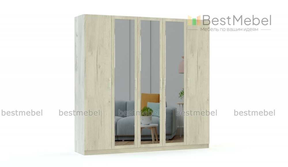 Распашной шкаф Рената 1 BMS отличается крупными габаритами и подходит для меблировки просторных помещений. Пятидверная модель не выглядит громоздко благодаря исполнению в светлых древесных тонах, а зеркала на фасаде визуально расширят границы комнаты. Вместительные внутренние отделения обеспечат удобное хранение предметам гардероба и постельным принадлежностям. Купить распашной шкаф Рената 1 BMS и компактно разместить большое количество вещей вам поможет наш интернет-магазин.