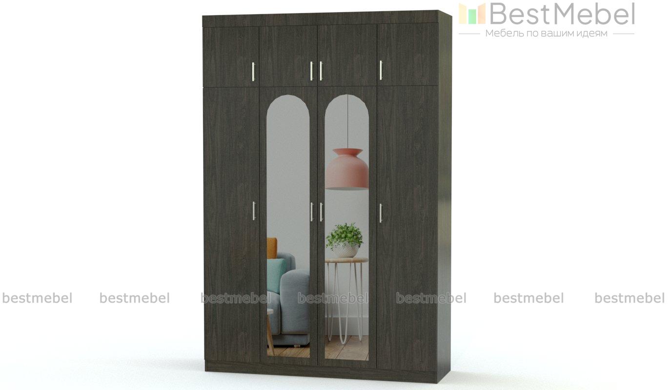 Распашной шкаф Татьяна BMS отличается классическим дизайном и особенной вместительностью за счет высоты. Помимо просторных отделений с бельевыми полками и штангой четырехдверный шкаф оборудован антресолью для удобного хранения сезонных вещей. Выполненная из ЛДСП в насыщенных древесных тонах, модель дополнена двумя ростовыми арочными зеркалами, визуально расширяющими границы комнаты. Купить распашной Татьяна BMS приглашаем недорого в наш интернет-магазин.