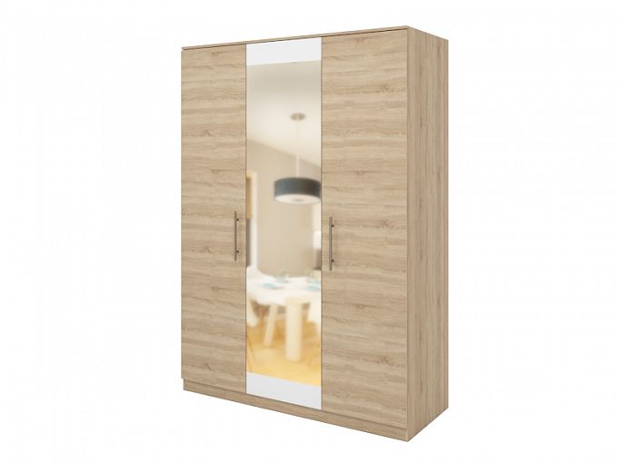 Шкаф АВРОРА 3-х дверный BMS легко вписать в большинство современных минималистичных интерьеров благодаря лаконичному дизайну и светлым древесным тонам. Вместительная модель с зеркалом в полный рост на фасаде станет незаменимым элементом интерьера спальни, а долговечность обеспечит защитная кромка. За распашными дверцами располагается секция с полками, просторное отделение со штангой и антресоль. Купить шкаф АВРОРА 3-х дверный BMS недорого вы сможете в нашем интернет-магазине.