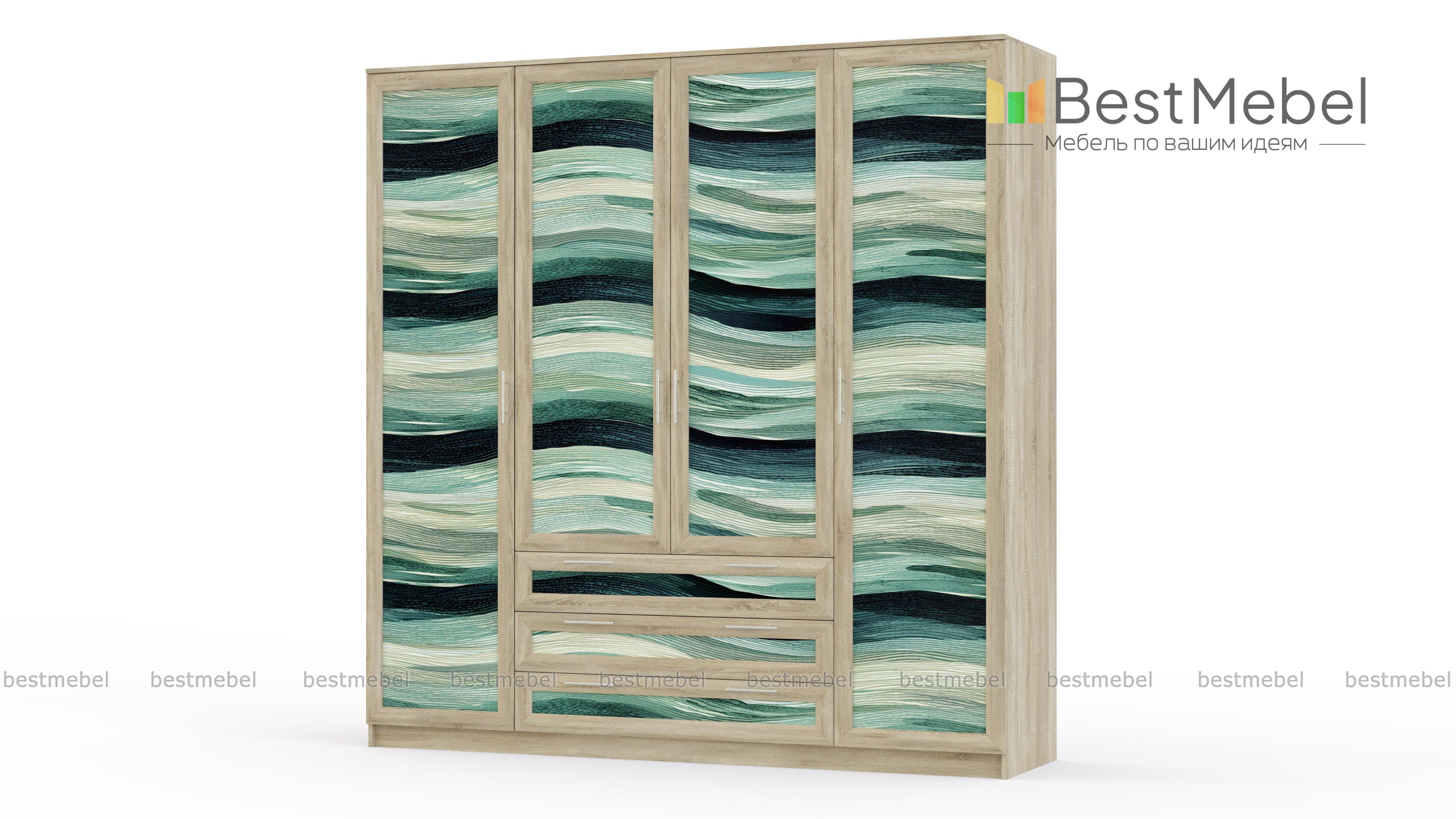 Шкаф Комфорт Люкс 4-3 BMS подойдет для создания ярких современных дизайнов. Рамочные фасады четырехдверной модели украшены стойкой фотопечатью в насыщенных, глубоких оттенках. Секция с платяной штангой и три вместительных выдвижных ящика в центре дополнены двумя бельевыми отделениями, расположенными по бокам. Купить шкаф Комфорт Люкс 4-3 BMS вы всегда сможете на сайте нашего интернет-магазина с выбором необходимых размеров и оттенков из каталога.