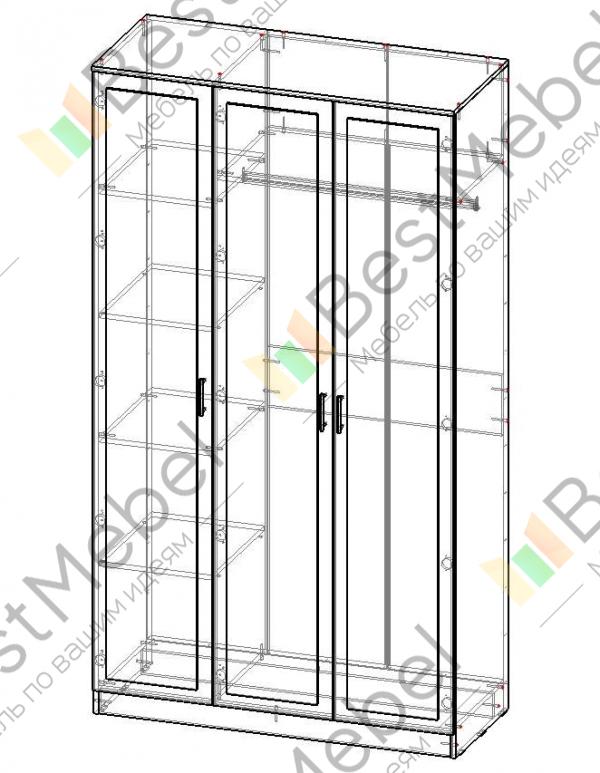 Классическая модель шкафа, распашной трёхдверный МДФ-3 состоит из трёх отделений: два платяных с штангами для вешалок и полками для головных уборов, и одного бельевого с четырьмя полочками для постельных принадлежностей и нижней одежды. Качественная фурнитура способствует долговечности изделия. Заказать у нас на сайте шкаф МДФ-3 Вы можете в любое удобное Вам время, широкая палитра цветовых решений и возможность подобрать индивидуальный размер изделия помогут максимально удачно интегрировать мебель в Ваш интерьер!