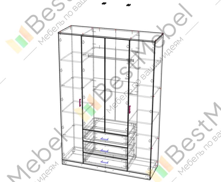 Шкаф Мишель 4-х дверный BMS гармонично впишется в интерьер спальни классического стиля и уместно смотрится как в комплекте с другими модулями серии, так и независимо. Отличную вместительность модели обеспечат разные типы отделений – платяное, бельевые полки и выдвижные ящики. Вы компактно разместите белье и одежду и легко найдете нужную вещь благодаря хорошей обзорности распашных конструкций. Фрезерованные фасады украшают изящные ручки, центральные створки – зеркальные. Купить шкаф Мишель 4-х дверный BMS и оптимизировать хранение вам поможет наш интернет-магазин.