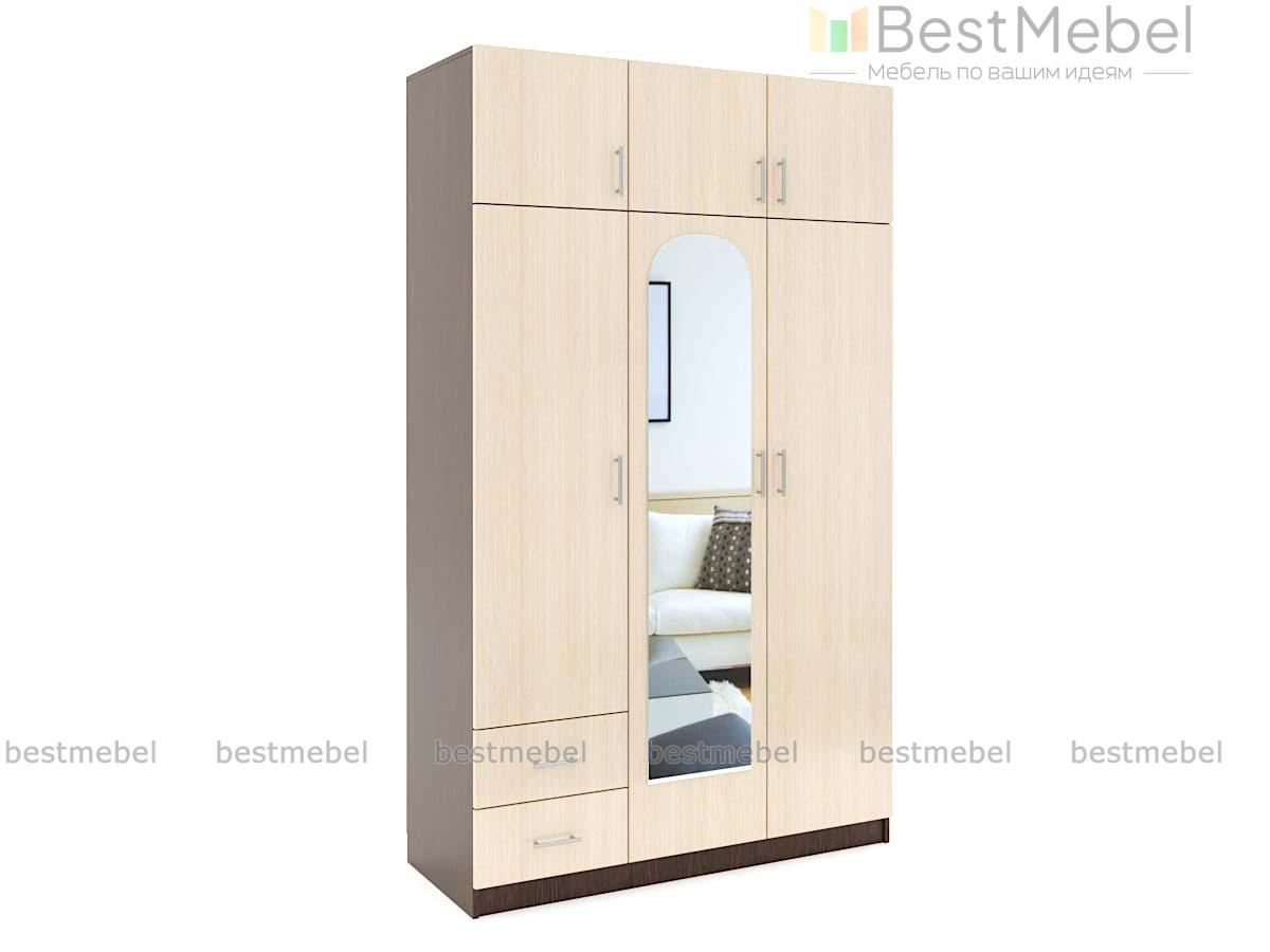 Шкаф Р-058 3-х створчатый с 2-мя ящиками BMS понравится тем, кто ценит традиционный дизайн и простые, надежные конструкции. Вместительная модель будет уместна в интерьере спальни или прихожей, а оптимальный вариант расцветки вы сможете подобрать самостоятельно. Шкаф с изящно скругленным зеркалом на фасаде оборудован секцией с полками, просторным отделением со штангой, антресольными полками и выдвижными ящичками для мелочей. Купить шкаф Р-058 3-х створчатый с 2-мя ящиками BMS недорого вы сможете в нашем интернет-магазине.