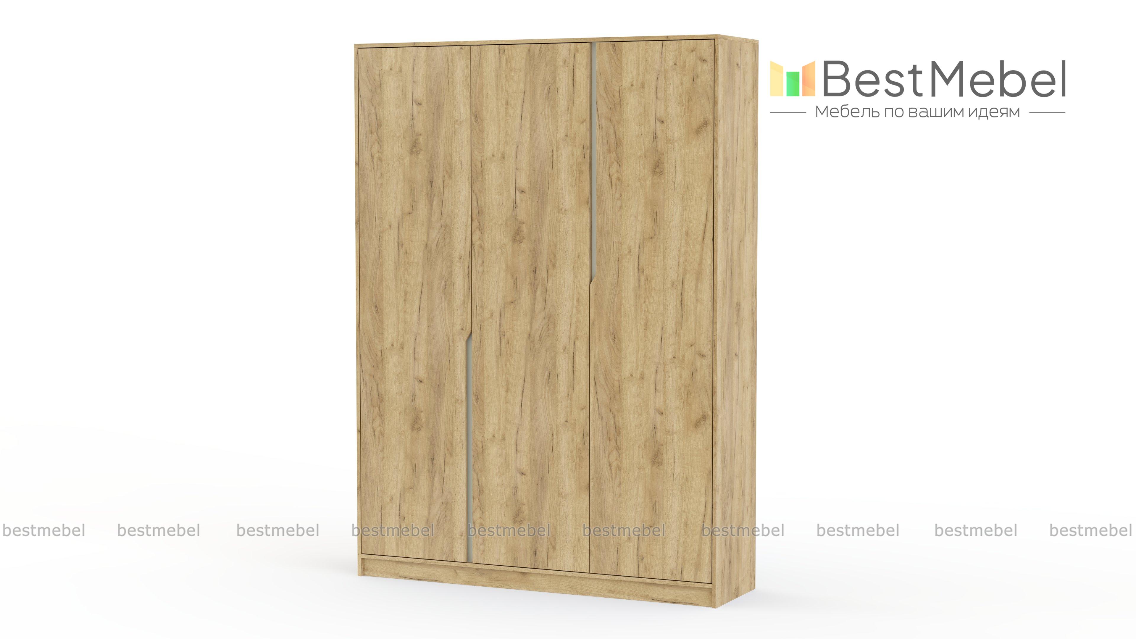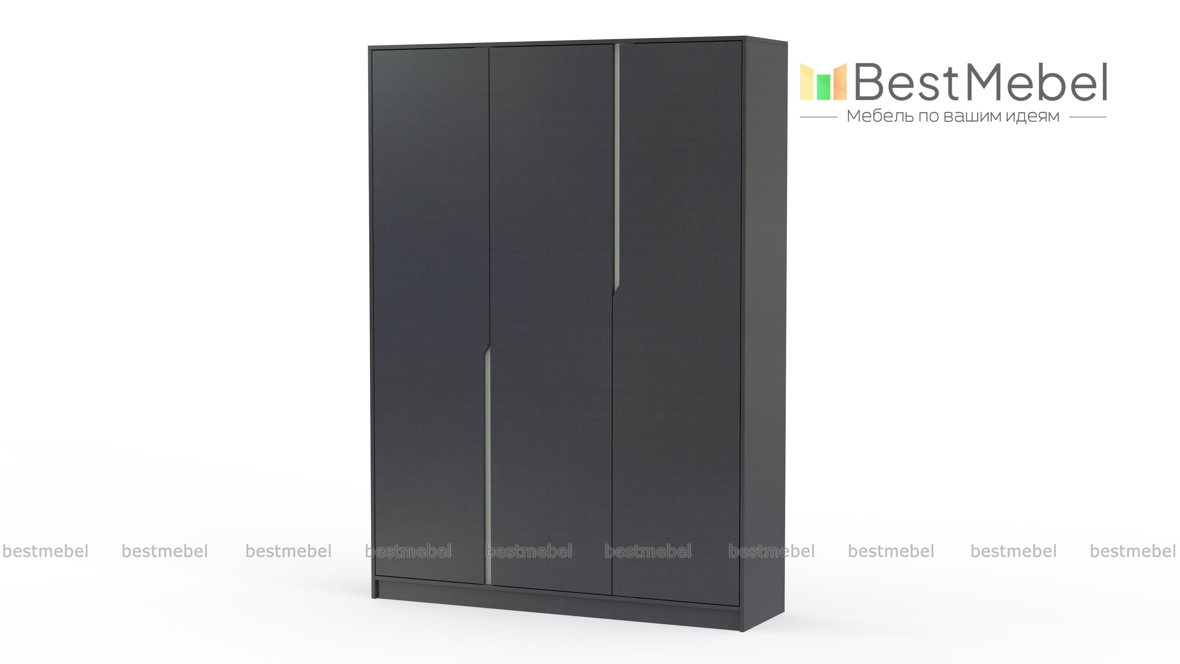 Шкаф распашной Брайтон 4 BMS отличают модная геометричность и спокойная нейтральная палитра. Трехдверная модель со сплошным внутренним фасадом и контрастными вырезами ручек эффектно дополнит минималистичные интерьеры. За створками классической распашной конструкции скрыты платяное отделение со штангой и бельевая секция с полками. Купить шкаф распашной Брайтон 4 BMS с изготовлением по индивидуальным размерам вы сможете на сайте нашего интернет-магазина.
