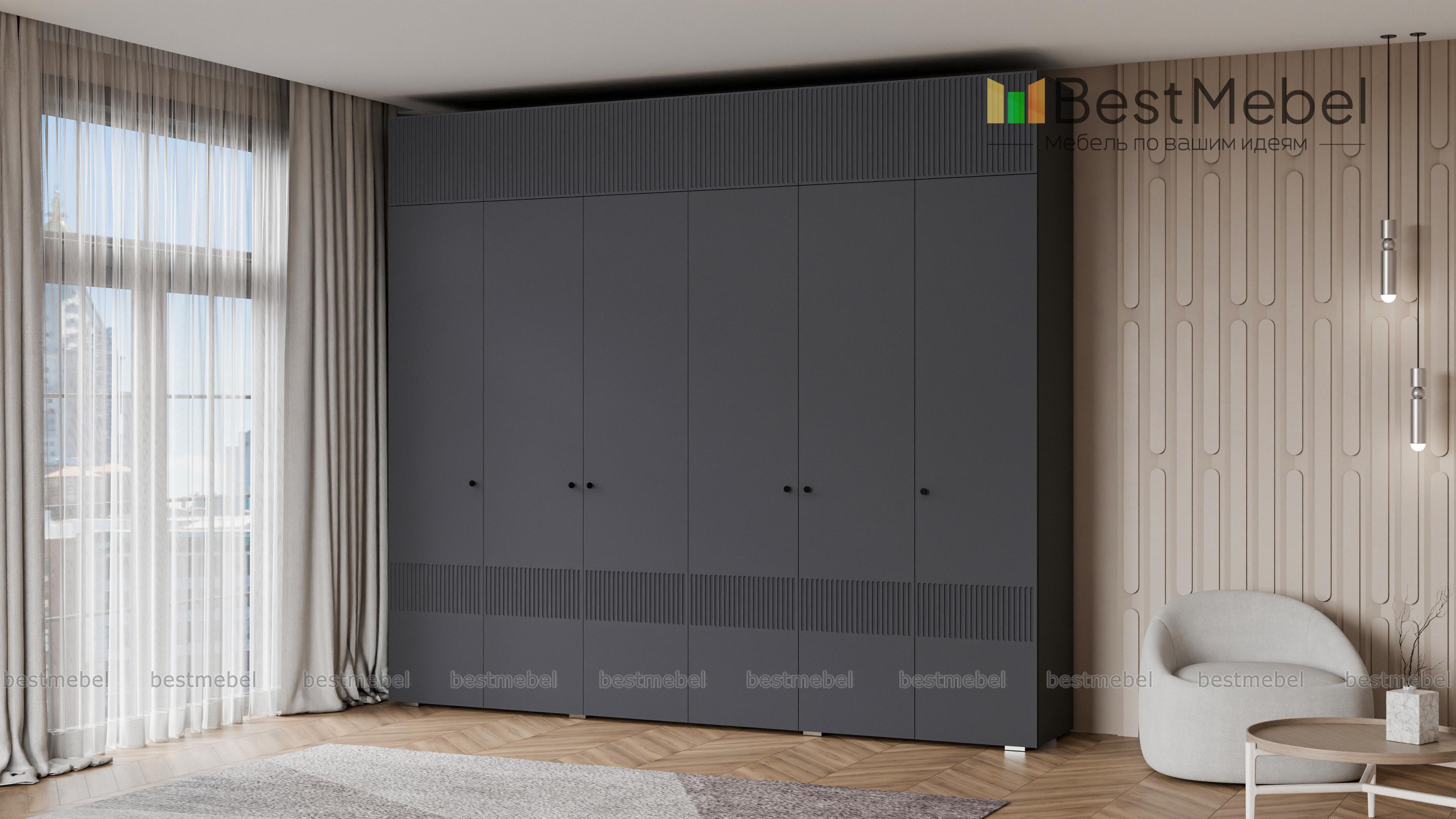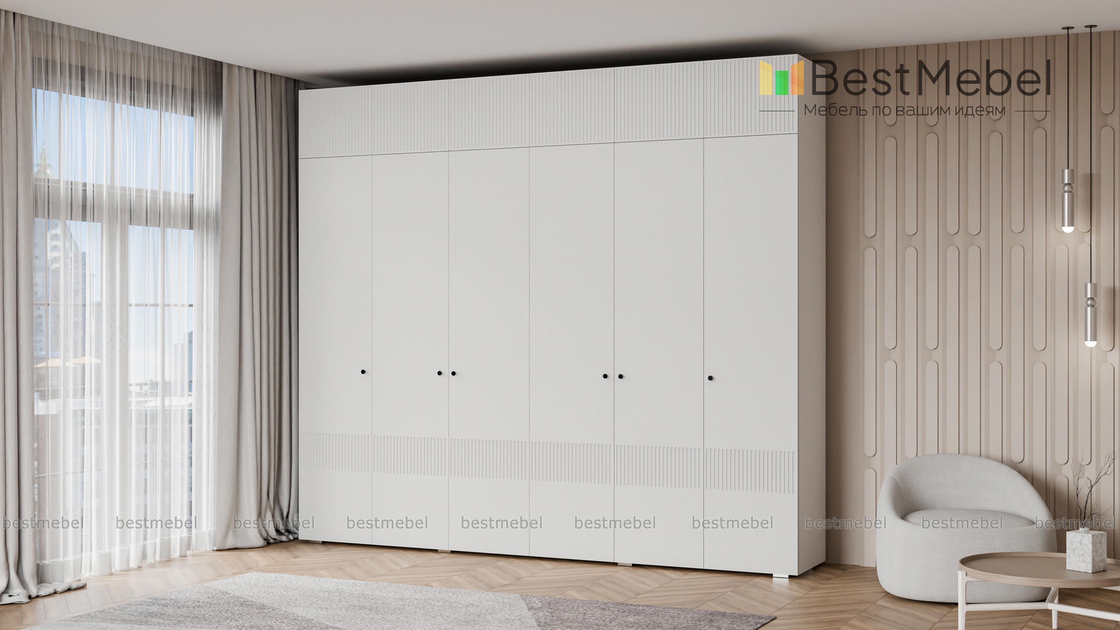 Шкаф распашной Джосс 12 BMS сохранит в порядке гардероб семьи. Шестидверная конструкция с двумя платяными отделениями, расположенными в центре, двумя бельевыми и вместительной антресолью оптимально подходит для хранения одежды и обуви двух человек. Выполненный в комфортной гамме, шкаф имеет стильную рельефную отделку по фасаду. Купить шкаф распашной Джосс 12 BMS вы сможете на сайте нашего интернет-магазина, подобрав нужные размеры, цвет и компоновку.