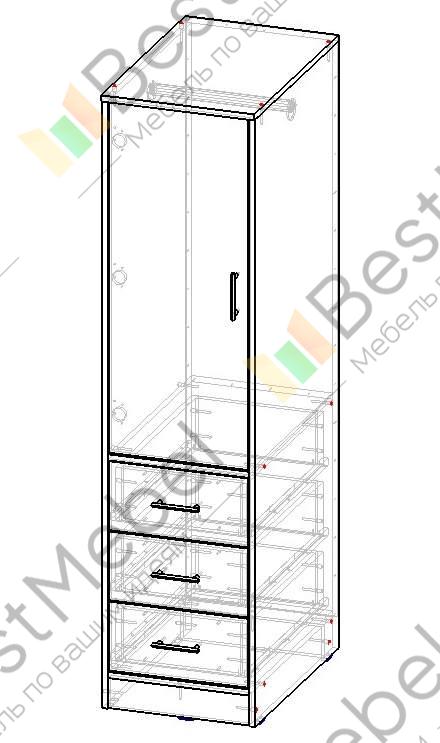 Шкаф распашной П-01 – один из представителей известной линейки корпусной мебели, выполненный в форме высокого пенала в современном стиле. Верхнюю половину модели П-01 занимает распахивающаяся дверца со штангой и полкой вверху. Внизу один над другим расположились три выдвижных ящичка. В целом, данное изделие будет хорошим приобретением для Вашей спальни, так как оно не занимает много места и может хранить в себе все необходимые вещи. Купить шкаф распашной П-01 можно на нашем сайте всего за несколько минут.