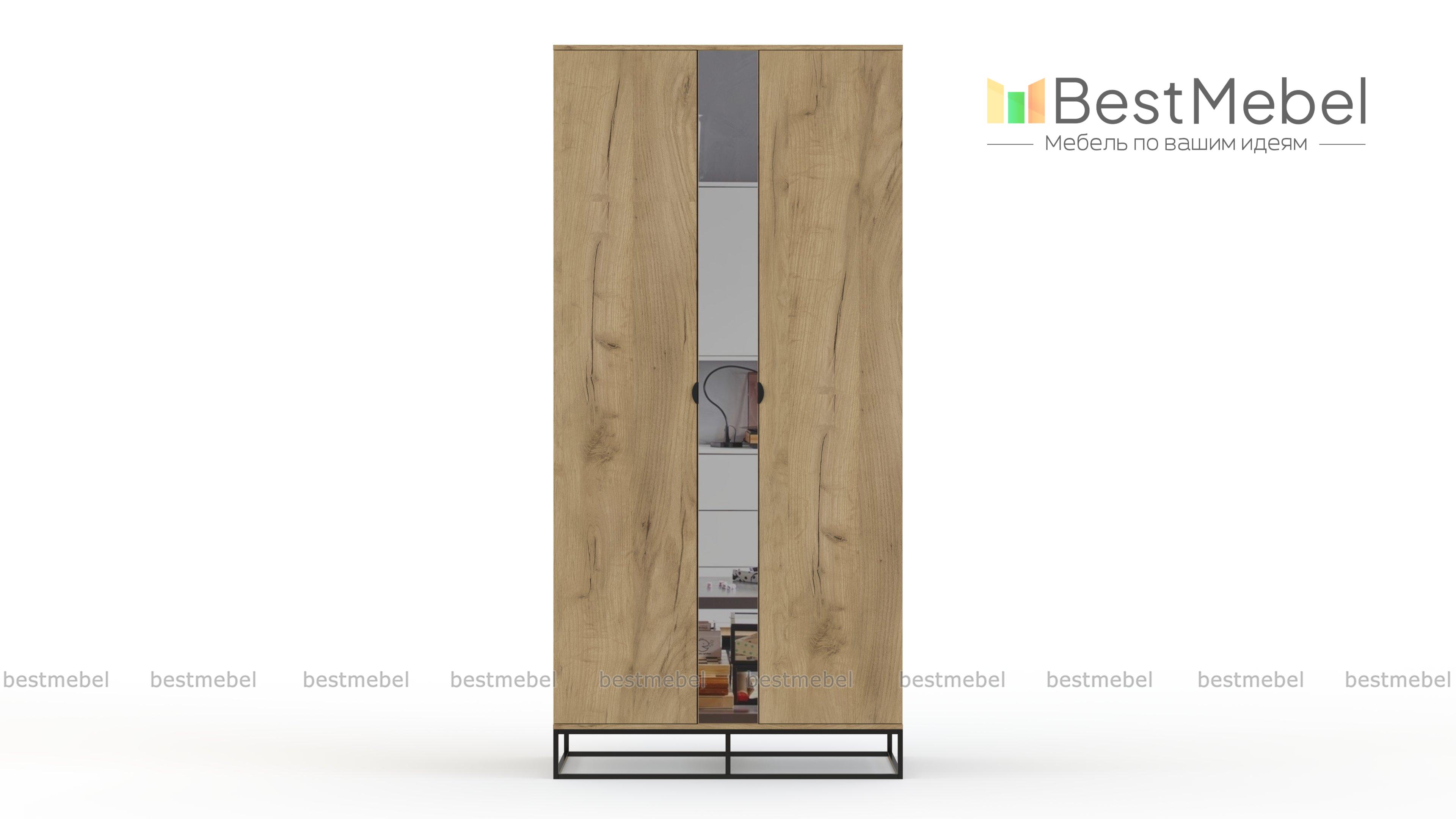 Шкаф распашной Пиксель 19 BMS – это не только удобная система хранения, но и элемент дизайна современного лофта. Двухдверная модель, выполненная в природном оттенке под массив дерева, располагается на прочном и легком металлическом основании. Распашные дверцы оснащены миниатюрными торцевыми ручками, не нарушающими общую гармонию оформления, а зеркальная вставка добавит комнате глубины. Купить шкаф распашной Пиксель 19 BMS для спальни или прихожей вы сможете в нашем интернет-магазине.