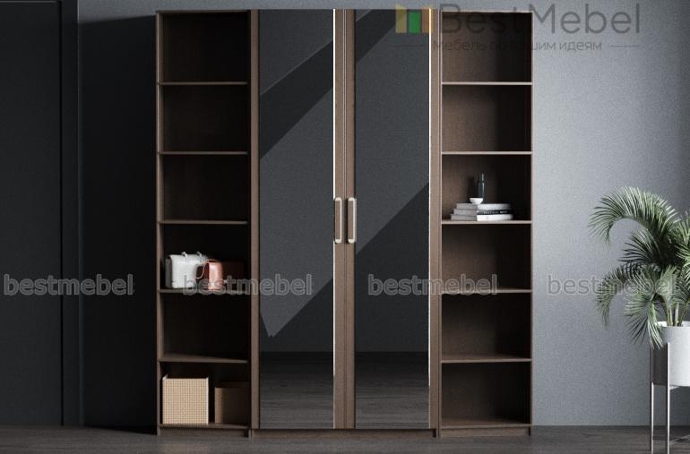 Шкаф распашной с полками Т 4 BMS – универсальная модель в светлых белых тонах, которая будет органично смотреться в интерьере спальни или гостиной. Функциональная конструкция представляет собой сочетание двухдверного шкафа для одежды с зеркальными фасадами и торцевых скошенных стеллажей с просторными полками, которые придают модели визуальную легкость и позволят разместить книги, предметы декора и разнообразные аксессуары. Купить шкаф распашной с полками Т 4 BMS приглашаем по лучшей цене в наш интернет-магазин.