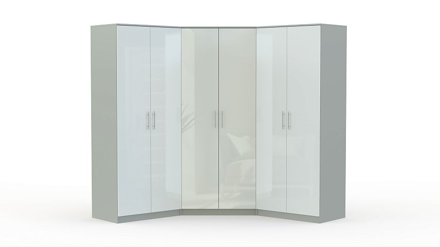 Шкаф угловой Глянец 21 BMS бережно разместит гардероб и составит стильный ансамбль с другой мебелью в современной стилистике. Эффектная композиция в нежных светлых цветах включает в себя угловой двухдверный шкаф и два прямых, оснащенных платяными и бельевыми отделениями. Гладкие сплошные фасады, оснащенные удобными ручками-рейлингами, отличаются износостойкостью, и шкаф будет долго радовать вас эстетичным видом. Купить шкаф угловой Глянец 21 BMS приглашаем в наш интернет-магазин с выбором цвета и размеров.