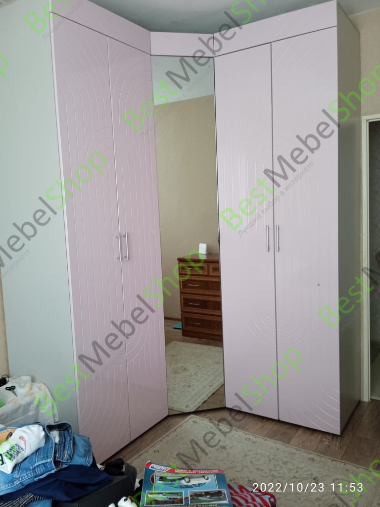 Заказ 00000182495, изделие ЭСКИЗ №00000182495 Шкаф угловой Ирис 2 BMS. Заказали в сентябре шкаф в интернет -магазине Bestmebelshop.ru. При заказе обещали изготовление и доставку в течение недели, но я понимала, что минимум месяц уйдет на это, поэтому небольшой перенос срока меня устроил. Очень удобно, что огромный выбор моделей, размеры делают любые, в том числе высота изделия. Очень удобно. Стоимость нашего шкафа вместе с доставкой 73 000,00 руб. Сравнив цены в магазинах и шкафов за заказ по данным параметрам, в Bestmebelshop.ru оказалось гораздо выгодней. По качеству нет претензий. Цвет красивый.
