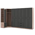 Шкаф угловой Перси 1 BMS – это продуманная до мелочей система хранения практичной Г-образной формы. Многофункциональная модель объединила просторные платяные и бельевые отделения, выдвижные ящики, открытую угловую секцию со штангой и тумбу, дополненную зеркалом с торцевыми полками для мелочей и аксессуаров. Древесного оттенка корпус эффектно сочетается с фрезерованными нейтрально-серыми фасадами. Купить шкаф угловой Перси 1 BMS для прихожей или спальни вы сможете в нашем интернет-магазине.