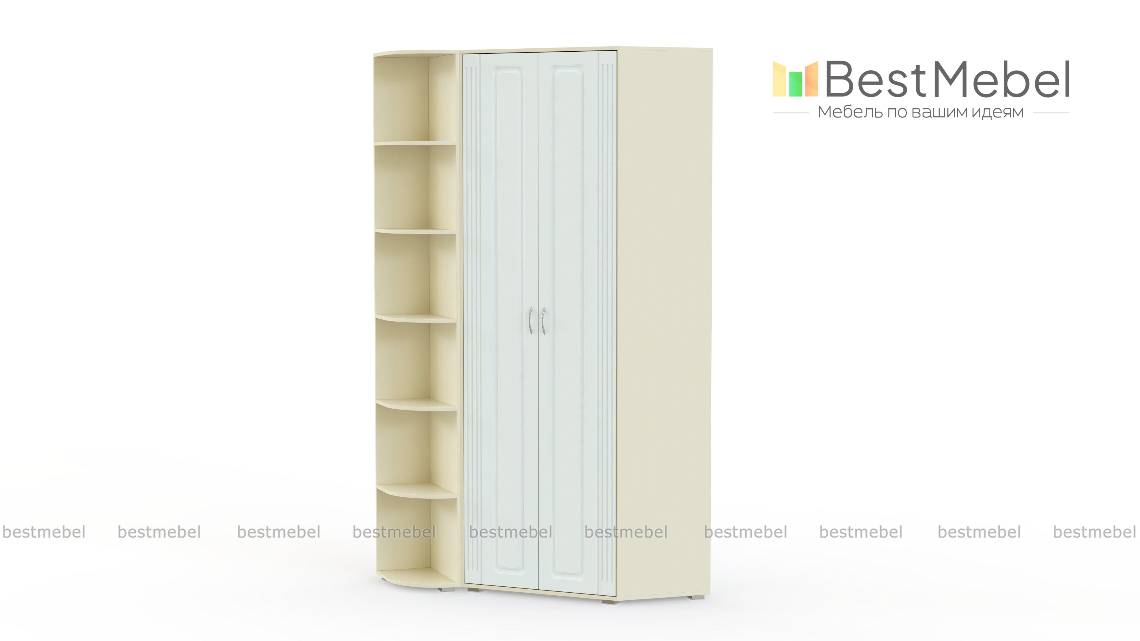 Шкаф угловой Виторе 1 BMS поможет вам по максимуму использовать пространство прихожей. Двухдверная модель в форме трапеции, оборудованная бельевыми полками и штангой, дополнена радиусным стеллажом под аксессуары, уходовые принадлежности и предметы декора. Акцентный классический дизайн создает классическая фрезеровка на створках шкафа. Купить шкаф угловой Виторе 1 BMS с выбором нужных размеров, цвета и фурнитуры приглашаем на сайт нашего интернет-магазина.