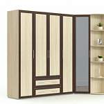 Шкаф угловой Волх BMS отличается классическим дизайном и вместительностью, а практичная конструкция позволяет вписать его как в просторные, так и в малогабаритные помещения. Удобная система хранения включает в себя угловой модуль с зеркальным фасадом, прямые распашные секции, два выдвижных ящика и торцевой стеллаж со скругленными полками. Долговечные рамочные фасады шкафа выполнены из ЛДСП в контрастных древесных тонах и оснащены ручками-рейлингами. Купить шкаф угловой Волх BMS вы сможете по доступной цене в нашем интернет-магазине.