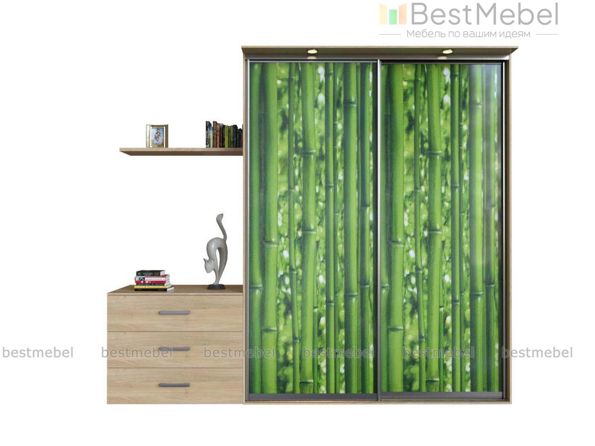 Шкаф-купе 4118 BMS с вместительным комодом и практичной полкой станет ярким интерьерным акцентом в молодежной комнате или современной спальне. Модель привлекает внимание оригинальной фотопечатью на фасадах с изображением бамбука, свежие краски которой подарят хорошее настроение и создадут позитивную атмосферу. Продуманная конструкция сможет выгодно использовать пространство, не оставляя незадействованных зон, и компактно разместить одежду и постельные принадлежности. Купить Шкаф-купе 4118 BMS для меблировки с элементами экостиля приглашаем в наш интернет-магазин.