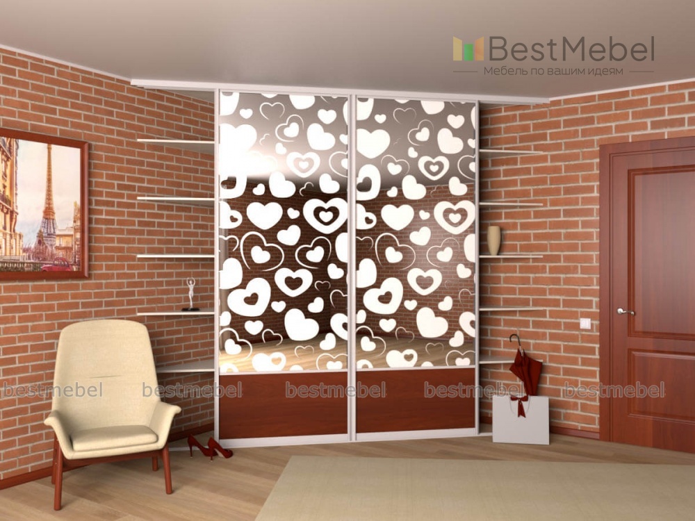 Шкаф-купе угловой Дадли BMS поможет эффективно использовать особенности планировки и отличается вместительностью при внешней компактности. Многофункциональная встроенная конструкция для интерьера современной спальни, гостиной или прихожей включает в себя двухдверное раздвижное отделение с полками и штангой, дополненное торцевыми стеллажами. Матовые зеркальные фасады шкафа декорированы пескоструйным рисунком. Купить шкаф-купе угловой Дадли BMS и разместить предметы гардероба, домашний текстиль и множество мелочей вам поможет наш интернет-магазин.