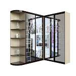 Угловой шкаф 133 BMS поможет не только компактно разместить большое количество вещей и эффективно задействовать пространство, но и станет украшением домашнего интерьера. Встроенная композиция из двух шкафов-купе и торцевого радиусного стеллажа выполнена в элегантном сочетании темных древесных поверхностей и зеркал с пескоструйным рисунком. Надежные в эксплуатации благодаря качественной системе направляющих, раздвижные дверцы экономят полезную площадь. Купить Угловой шкаф 133 BMS для современной спальни или прихожей вы сможете в нашем интернет-магазине.