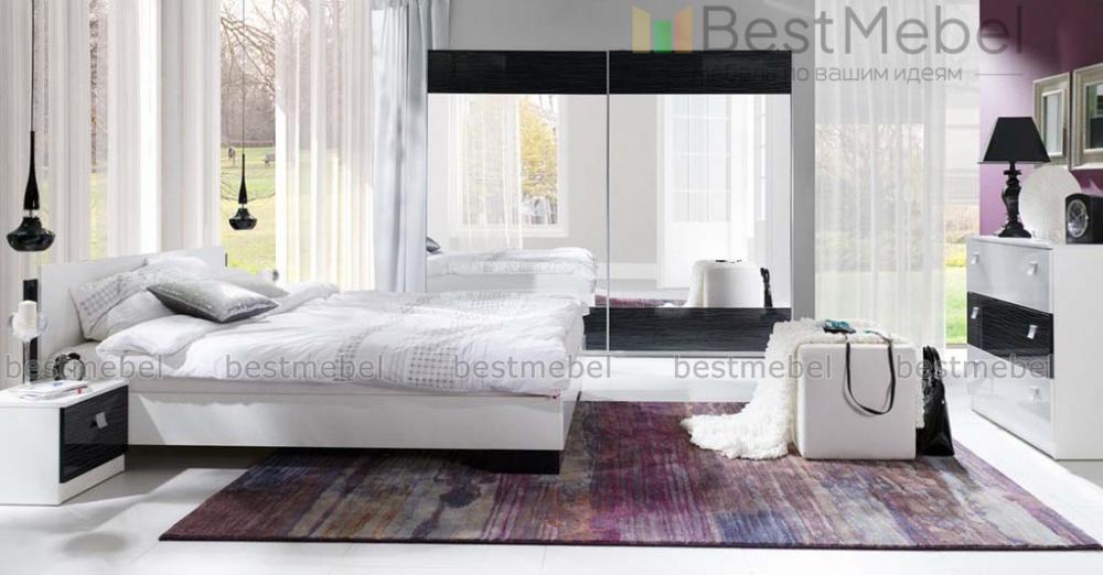 Современный минималистичный комплект может быть выполнен однотонным или в смелом черно – белом сочетании. Простота форм, четкость линий, отсутствие декора и высокая функциональность делают его желанным гостем современных интерьеров. В составе спального гарнитура Афродита BMS двуспальная кровать с тумбами, вместительный шкаф купе, оснащенный зеркалами, и удобный комод с тремя отделениями. Благодаря глянцевым фасадам модель смотрится особенно интересно и необычно.