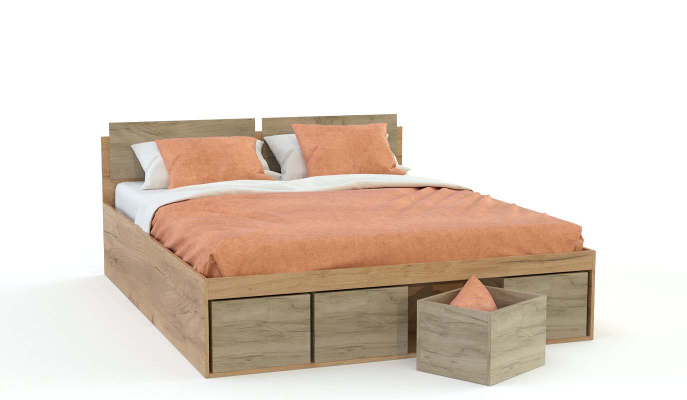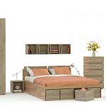 Практичный модульный комплект для спальни Hyper 1 BMS включает в себя стандартный набор из кровати с тумбами, комода, двухдверного одежного шкафа. Элементы выполнены в современном стиле и могут быть скомпонованы индивидуально с учетом особенностей вашего помещения. Благодаря необычным дизайнерским решениям и сочетанию темного корпуса с натуральной, теплой расцветкой фасадов, этот гарнитур смотрится стильно и создает уютную домашнюю атмосферу.