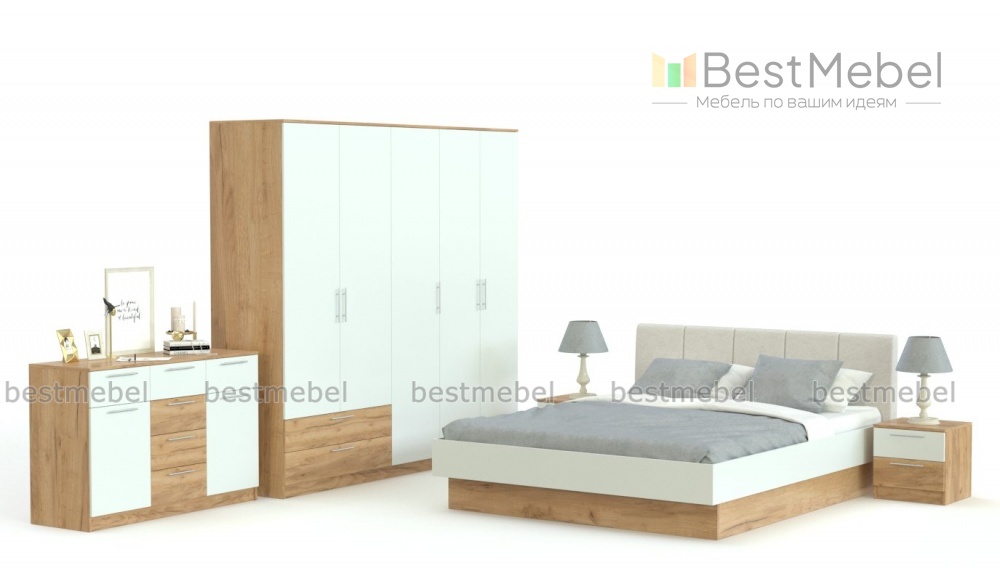 Спальня Лимбо 2 BMS подходит для меблировки просторных помещений, отличаясь крупными габаритами и эффектным минималистичным дизайном. В оформлении гарнитура скомбинированы поверхности теплых древесных тонов, нейтрально-серые и мягкая обивка в экокоже. Модульная композиция объединила двуспальную кровать с бельевыми ящиками в основании и эргономичной высокой спинкой, прикроватные тумбы, комбинированный широкий комод и пятидверный шкаф для бережного хранения гардероба. Купить спальню Лимбо 2 BMS по выгодной цене приглашаем к нам в интернет-магазин.