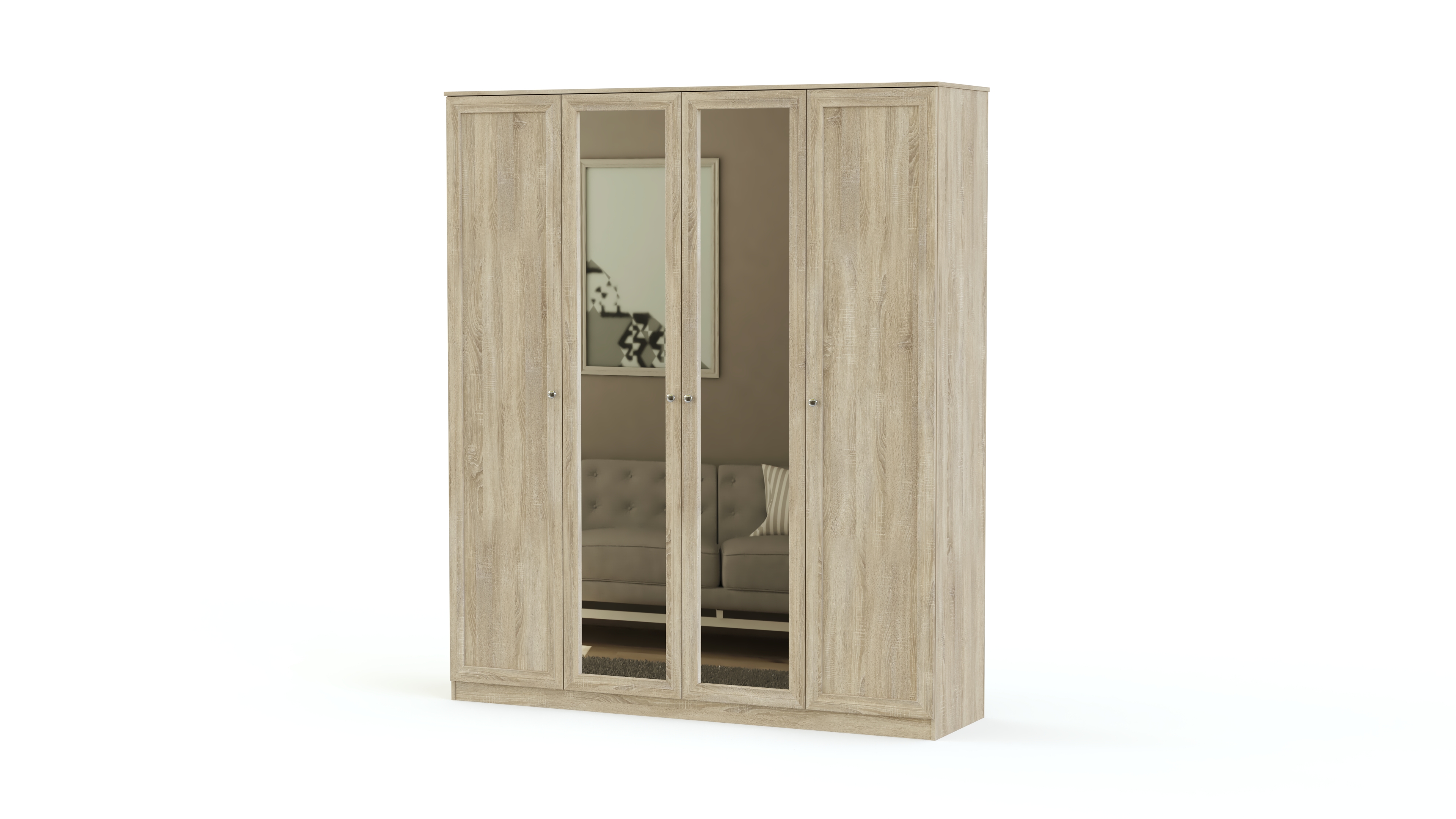 Элегантный классический комплект не выйдет из моды и прослужит вам долгие годы. Спальня Соната BMS состоит из нескольких модулей, которые удобно компоновать по своему вкусу. Это вместительный четырехдверный шкаф с зеркалами в полный рост, комод для белья и мелочей, туалетный столик с навесным зеркалом, кровать и прикроватные тумбы. Мебель выполнена в модных натуральных белых оттенках, а особенное изящество и легкость гарнитуру придают высокие ножки и металлическая фурнитура.
