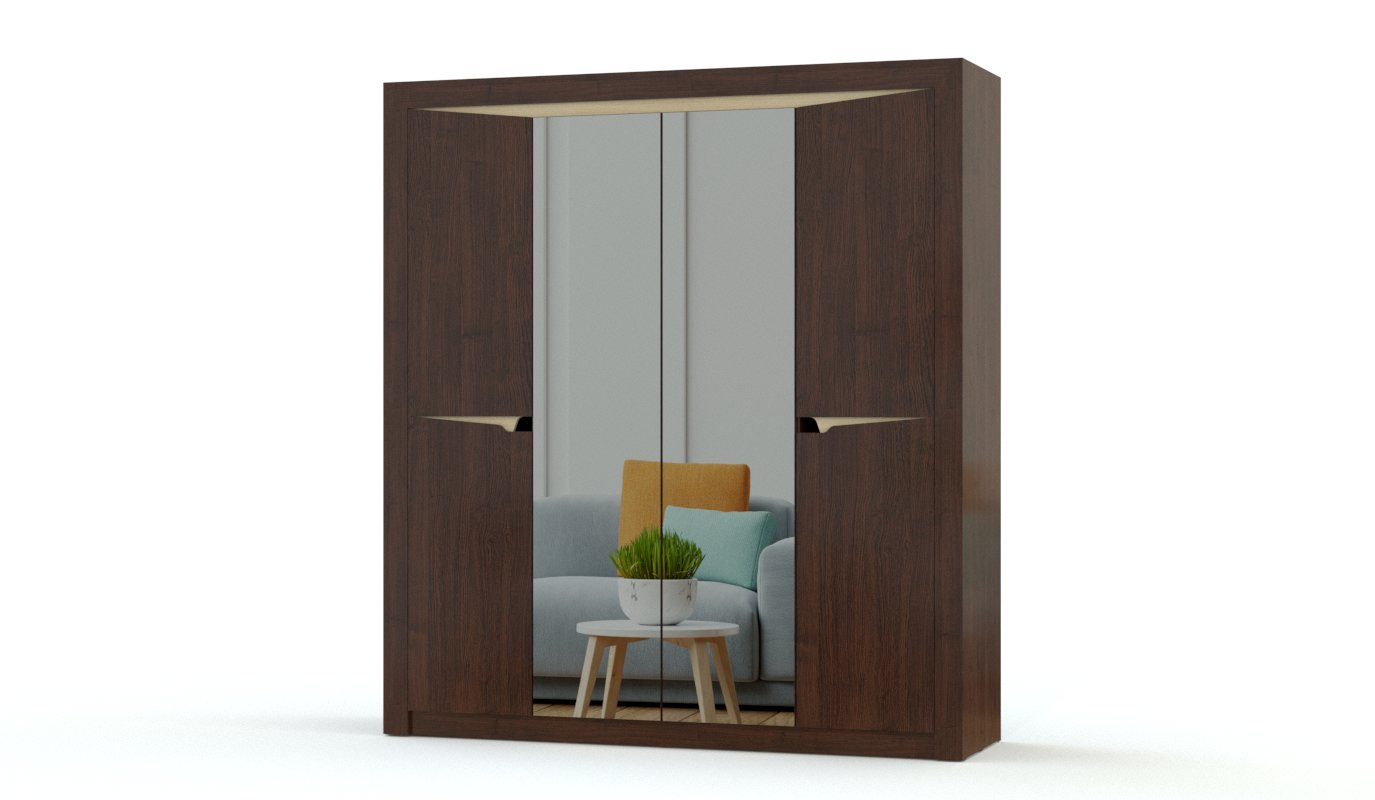 Эта современная модель отлично смотрится и в теплой бежевой, и в серой гамме актуальных древесных цветов. Ваша спальня будет выглядеть стильно, а вещи и предметы декора без труда разместятся благодаря удобной системе хранения. В комплекте спальни Соренто комплектация 2 BMS четырехстворчатый шкаф с зеркальными дверцами, комод с выдвижными ящиками и навесным зеркалом, двуспальная кровать и практичные тумбы с ящиком и открытой полкой для книг и журналов. Ручки модели имеют оригинальную форму в виде вырезов.