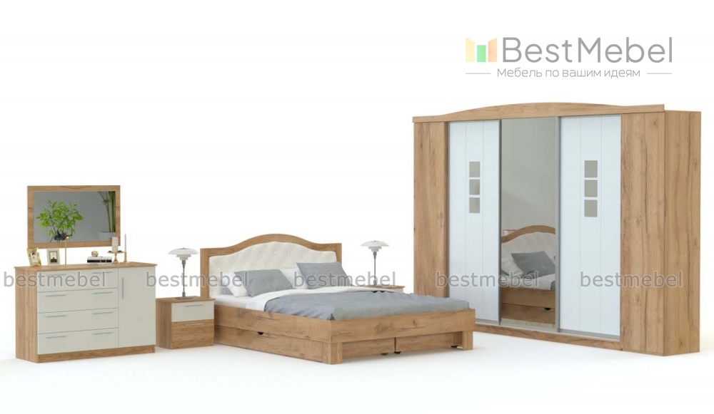 Спальня Техно 3 BMS станет прекрасным выбором для просторных помещений. Элегантный и практичный, гарнитур украсит современный интерьер и поможет оборудовать комнату всем необходимым для комфортного отдыха и хранения вещей. Композиция включает в себя кровать с бельевыми ящиками в основании и фигурным изголовьем с мягкой вставкой, прикроватные тумбы, вместительный комбинированный комод, навесное зеркало и трехдверный шкаф-купе с распашными боковыми секциями. Купить спальню Техно 3 BMS приглашаем в наш интернет-магазин.