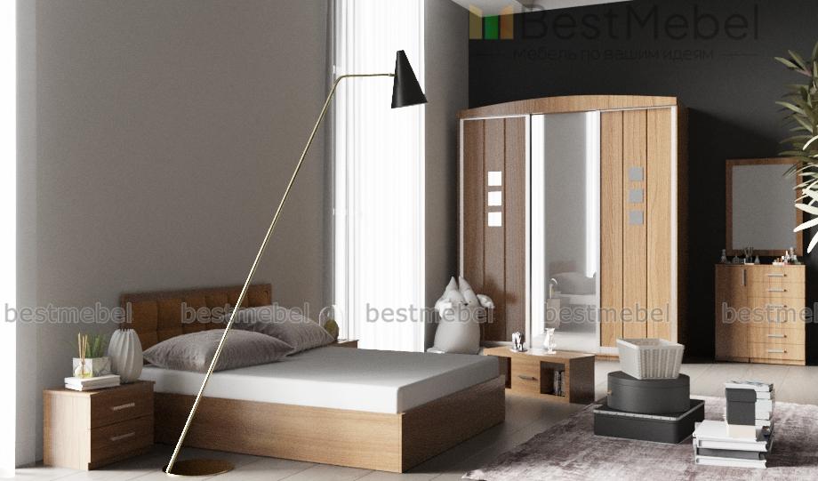 Спальня Техно 5 BMS поможет вам оборудовать комнату в едином стиле. Выполненная в натуральных древесных тонах, композиция создает комфортную для отдыха атмосферу и включает в себя все необходимое для сна, хранения вещей и ухода за собой. В комплекте двуспальная кровать с мягкой обивкой изголовья, прикроватные тумбы, высокий комбинированный комод с навесным зеркалом, геометричный журнальный столик и удобный для размещения гардероба трехдверный шкаф-купе с украшенной пескоструйным рисунком центральной створкой. Купить спальню Техно 5 BMS приглашаем выгодно в наш интернет-магазин.