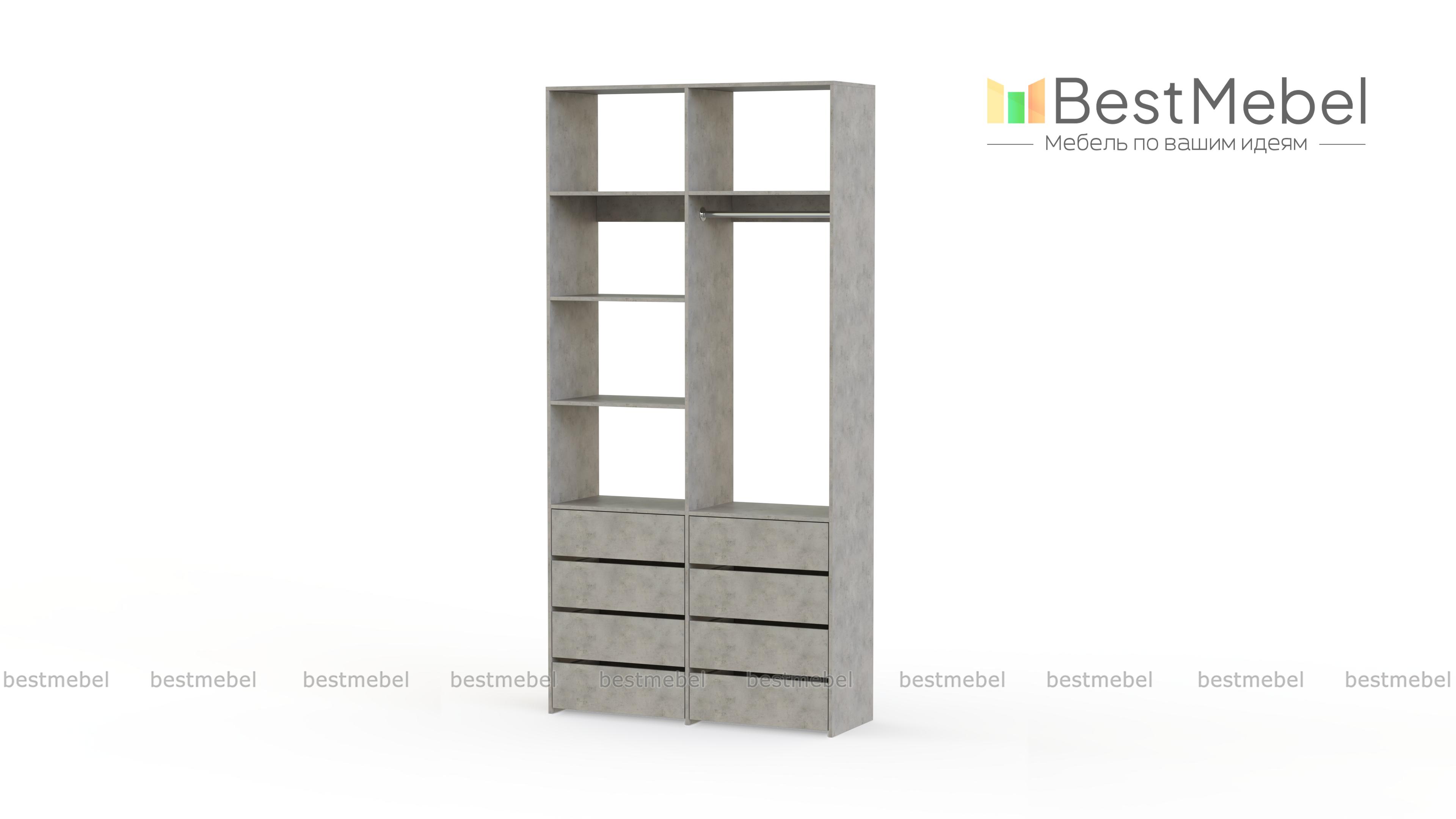 Стеллаж для одежды Мирта 3 BMS – функциональный и стильный предмет обстановки для вашего дома. Открытая конструкция позволяет разместить на виду повседневную одежду, коробки с обувью и органайзеры с мелочами, а для прочих вещей предусмотрены два ряда выдвижных ящиков. Прочность и долговечность стеллажу гарантируют материалы и фурнитура высокого качества. Купить стеллаж для одежды Мирта 3 BMS вы сможете в нашем интернет-магазине с изготовлением по индивидуальным размерам.