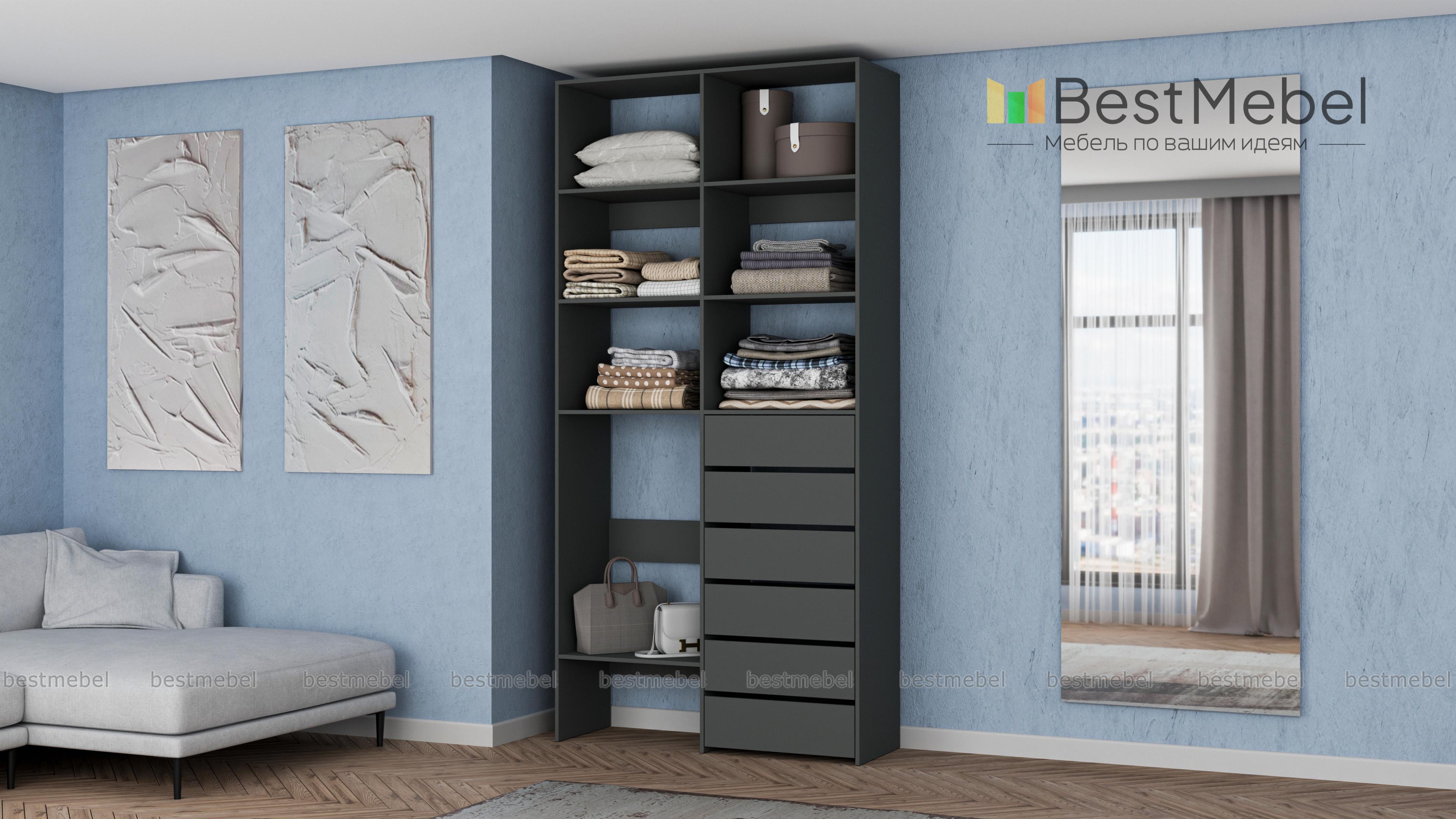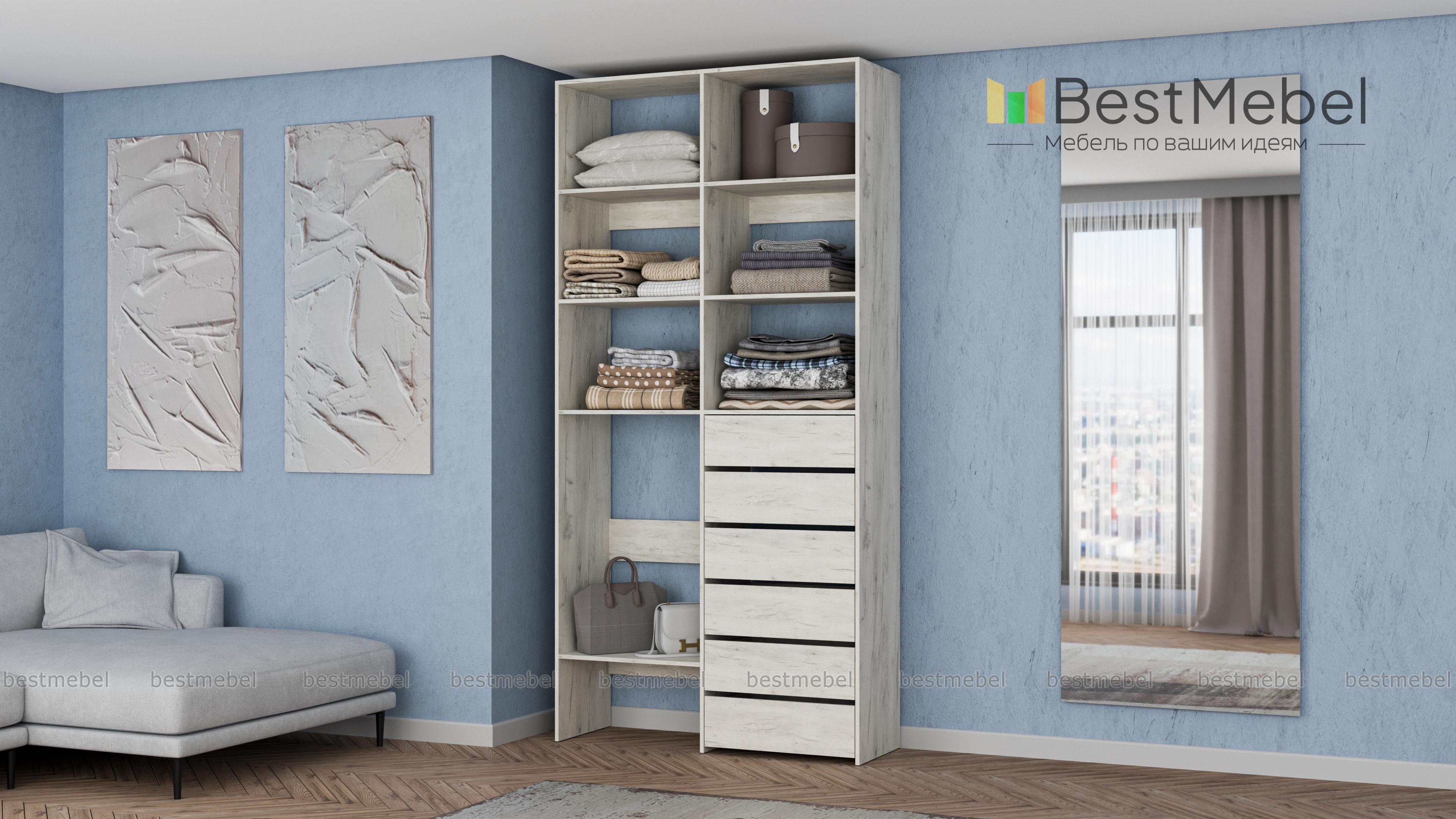 Стеллаж для одежды Мирта 39 BMS представляет собой готовое решение для вашей прихожей или гардеробной комнаты. Расположенные на разной высоте полки и целых шесть выдвижных ящиков позволят вам разместить как мелкие, так и габаритные вещи: одежду, обувные коробки и всевозможные аксессуары. Для изготовления стеллажа использован современный экологичный материал — ламинированная ДСП. Купить стеллаж для одежды Мирта 39 BMS в оттенках нашего каталога на выбор вы сможете на сайте интернет-магазина.