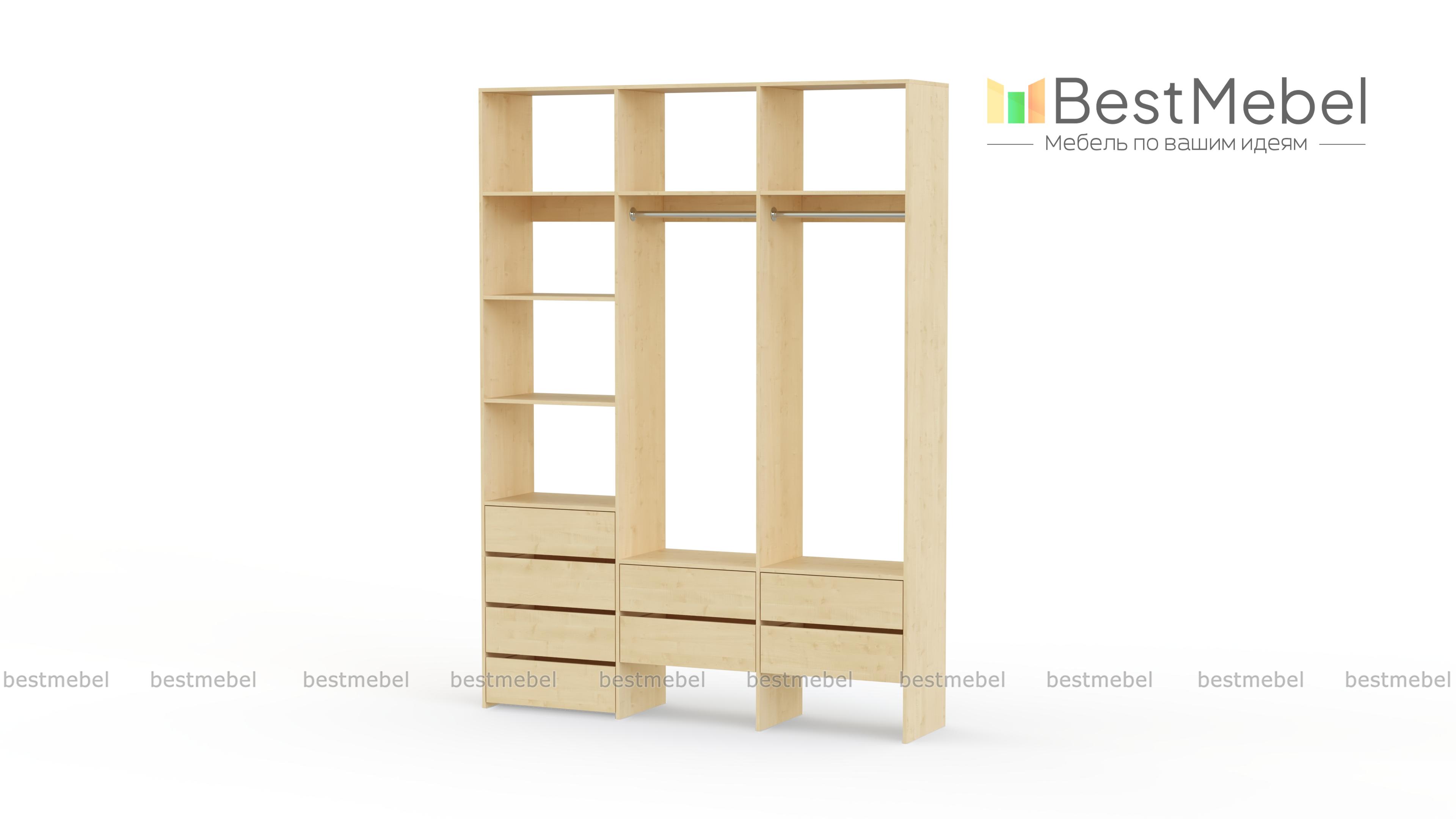 Стеллаж для одежды Мирта 54 BMS станет частью современной прихожей или гардеробной. Конструкция из ламинированной плиты имеет универсальный дизайн, надежна и функциональна. Система хранения трехсекционного стеллажа включает в себя две платяные штанги, ящики для белья и мелочей, ряд верхних и боковых полок, а пространство под ящиками можно использовать для размещения обуви. Купить стеллаж для одежды Мирта 54 BMS приглашаем в наш интернет-магазин, подобрав нужные размеры и цвет по каталогу.