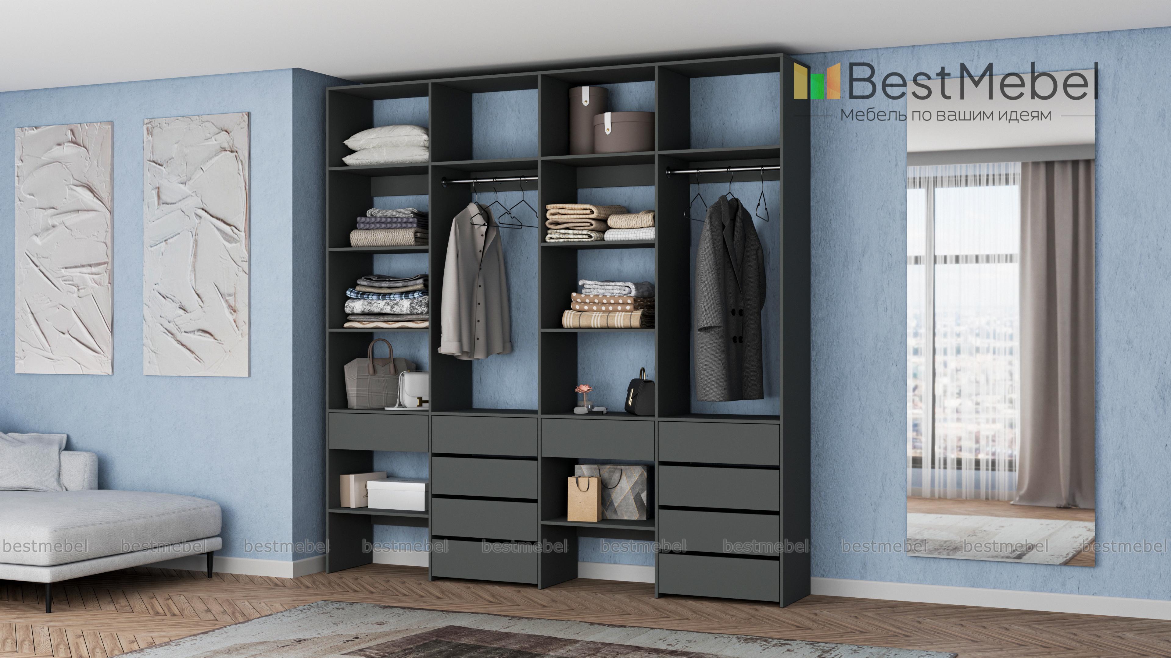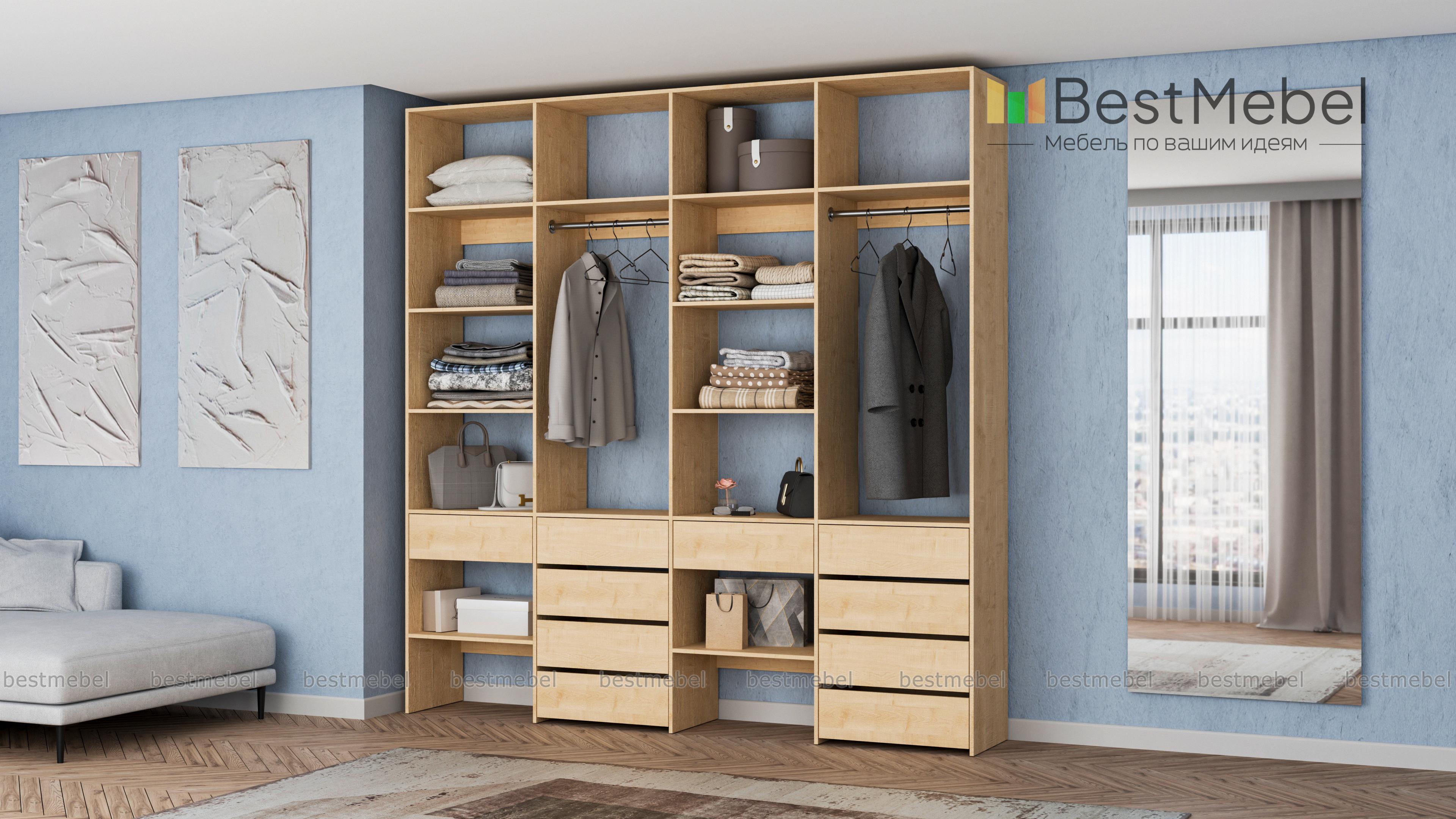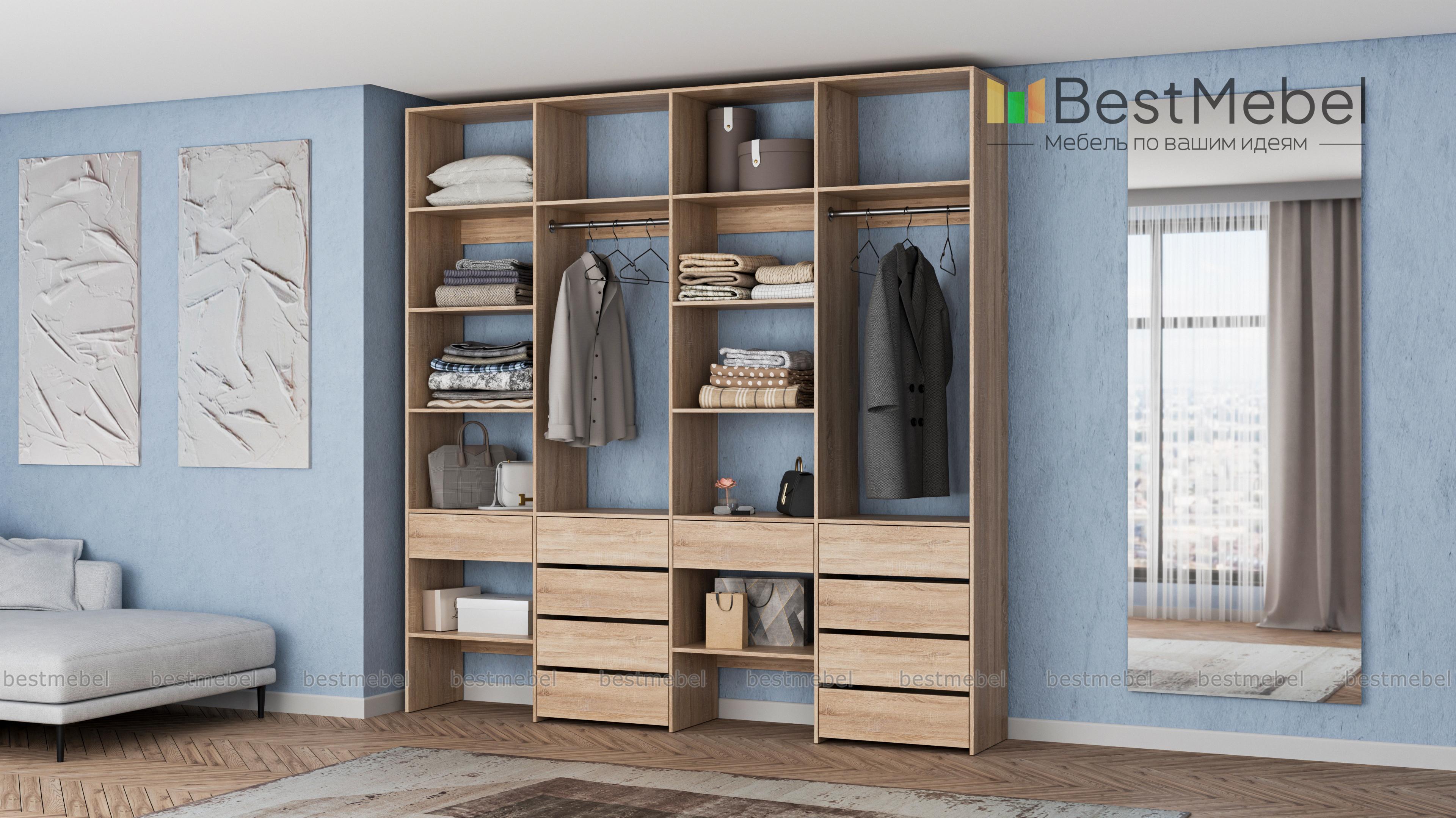 Стеллаж для одежды Мирта 61 BMS обеспечит удобное хранение вашим вещам, помогая поддерживать порядок в доме. В конструкции вместительного четырехсекционного стеллажа чередуются открытые полки и штанги, а выдвижные ящики выполняют функцию комода. За ламинированными поверхностями легко ухаживать и стеллаж надолго сохранит свой эстетичный вид. Купить стеллаж для одежды Мирта 61 BMS в необходимом размере и подходящем вашему интерьеру оттенке вы сможете в нашем интернет-магазине.