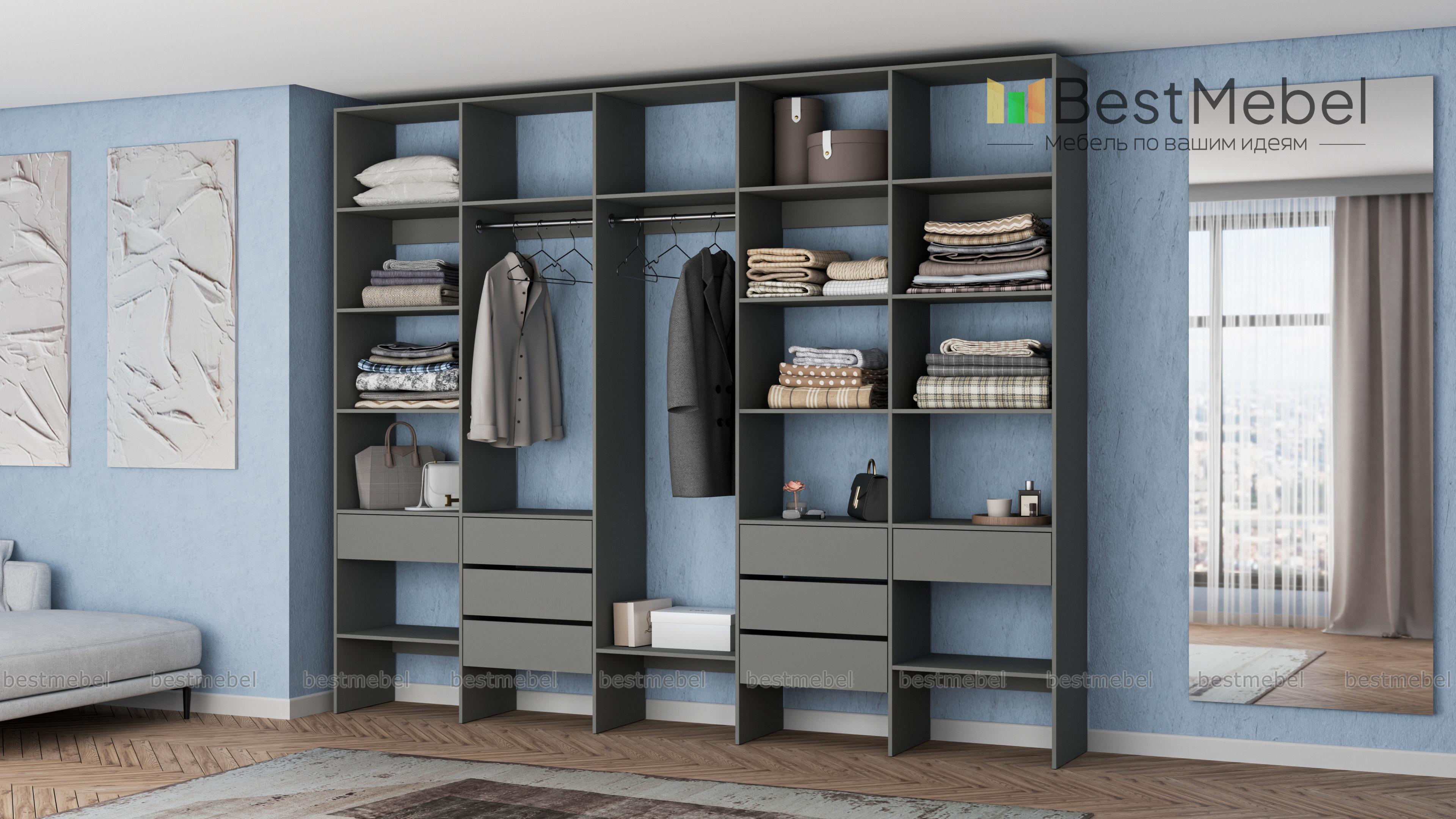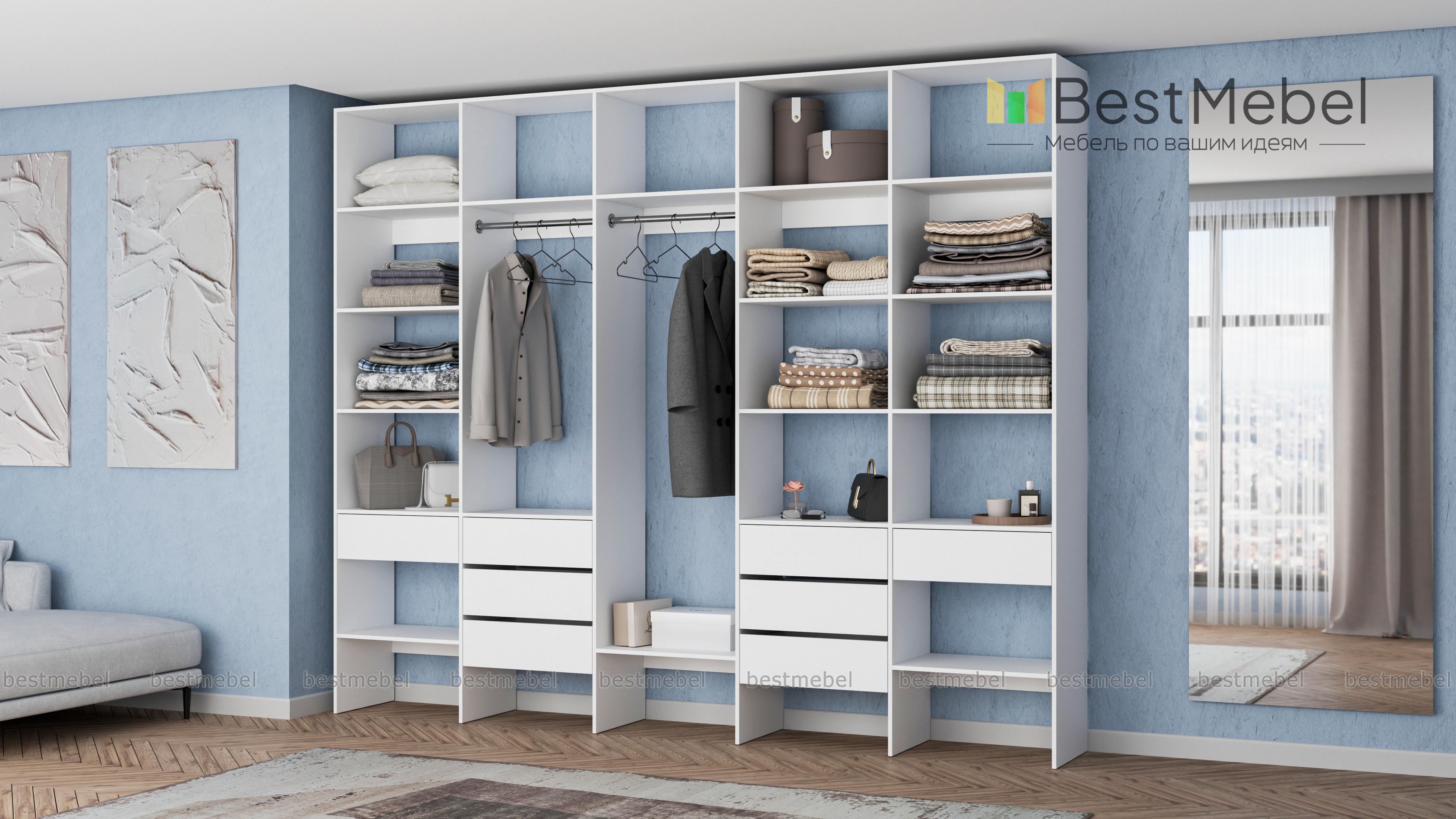 Стеллаж для одежды Мирта 72 BMS поможет вам обустроить зону для хранения вещей. Пять секций стеллажа оборудованы полками, двумя штангами и комбинацией из восьми выдвижных ящиков, позволяя выделить зоны для разных типов одежды, обуви и аксессуаров. Ламинированная ДСП в сочетании с качественной фурнитурой создает долговечную и эстетичную конструкцию. Купить стеллаж для одежды Мирта 72 BMS, подобрав оптимальные размеры и оттенок для вашего интерьера, приглашаем в наш интернет-магазин.