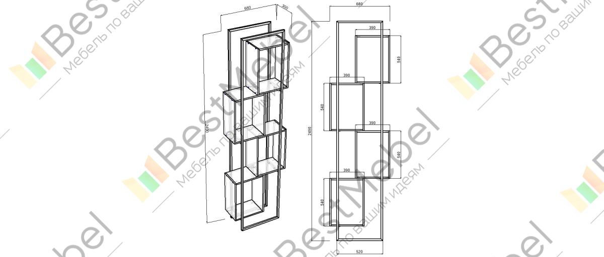 Стеллаж Рубенс 1 BMS станет элементом дизайна в современном индустриальном интерьере. Четыре открытые кубические секции располагаются зигзагом на устойчивом металлическом каркасе из трубного профиля. Визуально легкий и геометричный стеллаж не занимает много места и позволяет выигрышно представить предметы декора и книги. Износостойкость поверхностей гарантирует эстетичный вид на протяжении всего срока службы. Купить стеллаж Рубенс 1 BMS приглашаем на сайт нашего интернет-магазина.