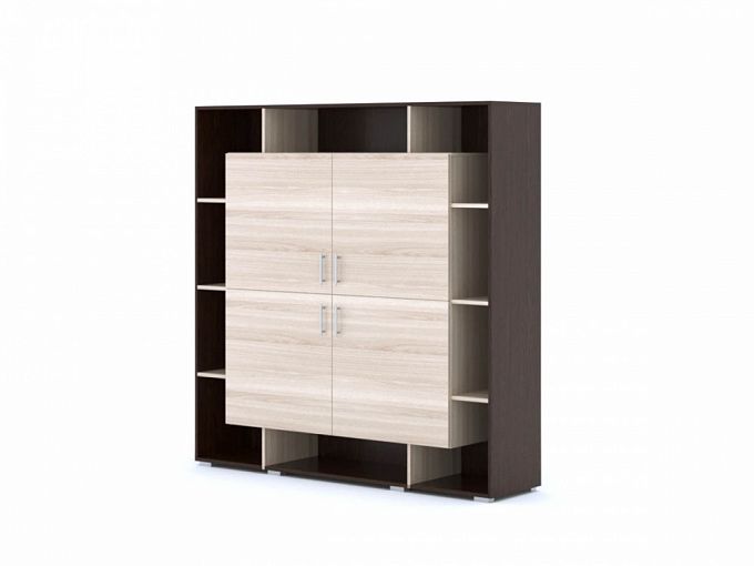 Нестандартное конструкторское решение модели "СТ-27" BMS оценят поклонники современного дизайна и функциональности. Стеллаж представляет собой центральные распашные отделения с открытыми полками по периметру. Вместительная модель позволит не только хранить предметы гардероба, но и эффектно разместить интерьерные украшения и книги. Стеллаж выполняется в контрастных цветах под массив дерева, а оптимальные оттенки вы сможете подобрать в нашем интернет-магазине.