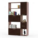 Стеллаж универсальный Брамс 10 BMS подходит для меблировки дома или офиса, удобен для размещения рабочих материалов и зонирования. Высокая комбинированная модель для максимально удобного хранения оборудована разноплановыми отделениями – открытыми полками, глухими с распашными и откидными вниз дверцами, а также выдвижными ящиками для мелочей. Фасады в практичном темном оттенке под дерево дополнены ручками-рейлингами. Купить стеллаж универсальный Брамс 10 BMS вы сможете в нашем интернет-магазине.