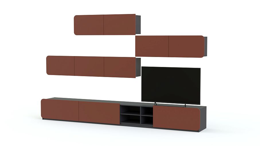 Стенка Модерно 12.1 BMS – лаконичная модульная композиция для современной гостиной. Крупногабаритная модель выглядит легкой и сделает помещение визуально просторнее. В комплект входят низкая тумба с ящиками и открытыми полками и три навесных шкафчика с откидными дверцами. Стенка позволит разместить не только ТВ, но и книги, предметы декора и многое другое. Скругленные матовые фасады надолго сохранят эстетичный внешний вид. Купить стенку Модерно 12.1 BMS вы сможете в нашем интернет-магазине по отличной цене.