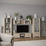Стенка Калпе 1 BMS понравится поклонникам простых и функциональных интерьеров в скандинавском стиле. Практичный модульный комплект позволит рационально спланировать пространство как небольшого, так и просторного помещения. Стенка оборудована двумя высокими шкафчиками-витринами, низкой широкой тумбой под ТВ с нишами и закрытыми отделениями и навесной полкой, разделенной на секции. Нарочитая грубоватость форм гармонично сочетается с теплыми оттенками под массив дерева. Купить стенку Калпе 1 BMS приглашаем в наш интернет-магазин.