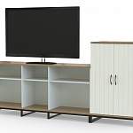 Стенка Лукас 11 BMS состоит из двух функциональных модулей, которые можно использовать вместе или по отдельности, а также дополнять другими предметами серии. Композиция из двух тумб – широкой с открытыми полками и распашной, подходит для оформления ТВ-зоны в небольшой гостиной, хранения вещей и демонстрации декора. Светлый фасад с вертикальной фрезеровкой придает легкость индустриальному дизайну. Купить стенку Лукас 11 BMS приглашаем в наш интернет-магазин с выбором фурнитуры и цвета по каталогу.