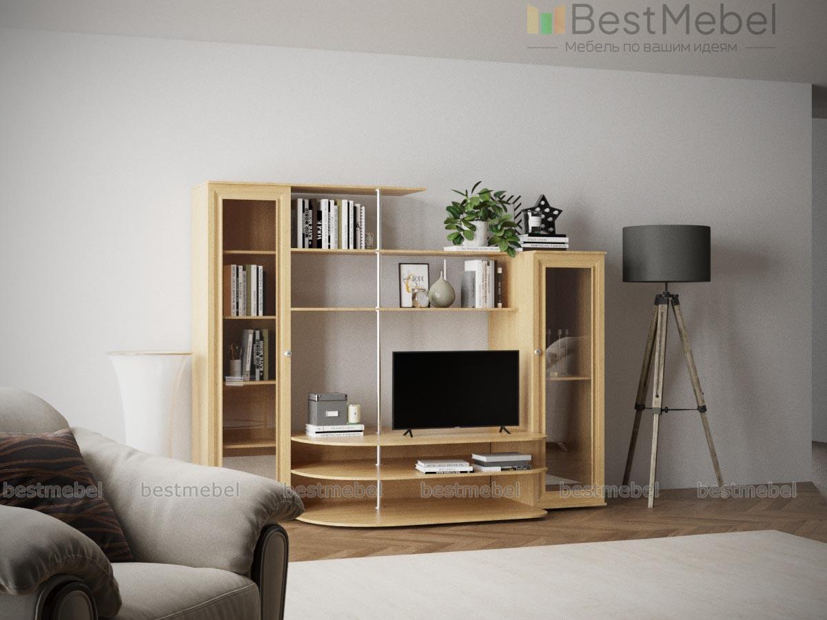 Миниатюрная, современная модель, наверняка понравится любителям минимализма и владельцев небольших квартир. Стенка Нокрюрн-4 представляет собой большую тумбу под телевизор и прочую аппаратуру с двумя нижними и тремя полками сверху. По бокам имеется два застекленных шкафчика с полочками для книг, дисков и т.п. Особый колорит стенке придает вертикальная хромированная штанга и разный уровень шкафов. Купить такую мебель можно практически для любого помещения в доме и в офис.