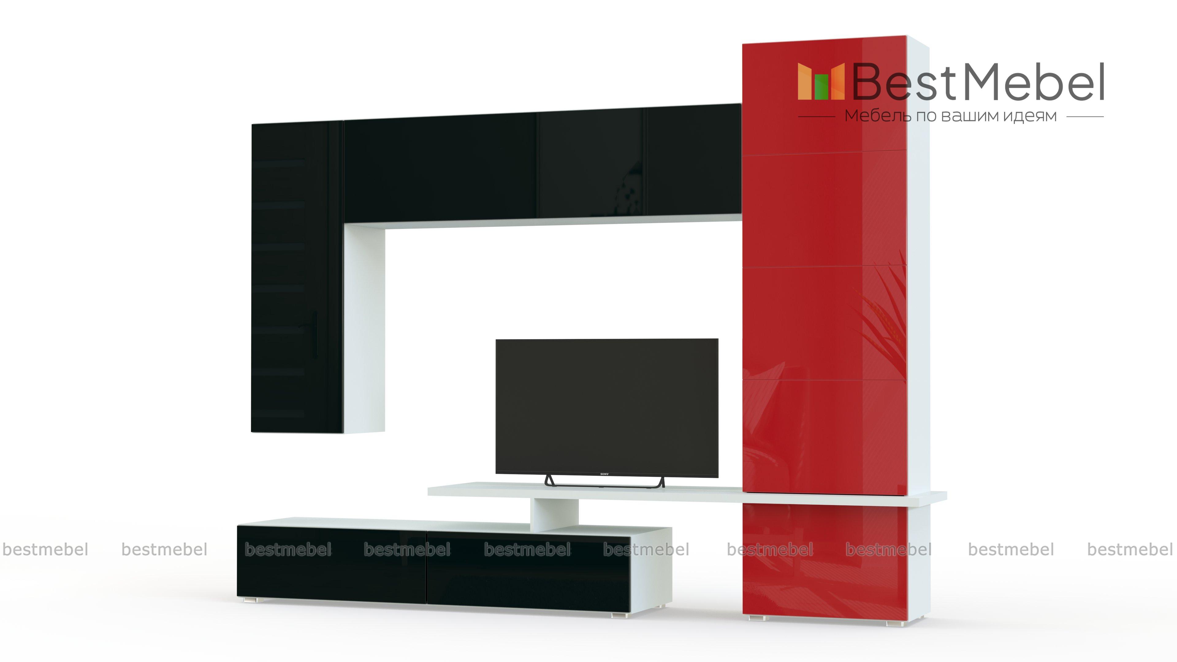 Стенка Полли 22 BMS подойдет тем, кто ценит геометричную простоту и функциональность современных дизайнов. Модульная композиция включает в себя напольные и навесные элементы – тумбу под аппаратуру, горизонтальный и вертикальный шкафы с полками, пенал и столешницу, на которой смогут разместиться предметы декора, книги или телевизор. Лаконичные фасады выполнены в контрастном глянце и гармонично вписываются в интерьеры стиля минимализм. Купить стенку Полли 22 BMS приглашаем в наш интернет-магазин.