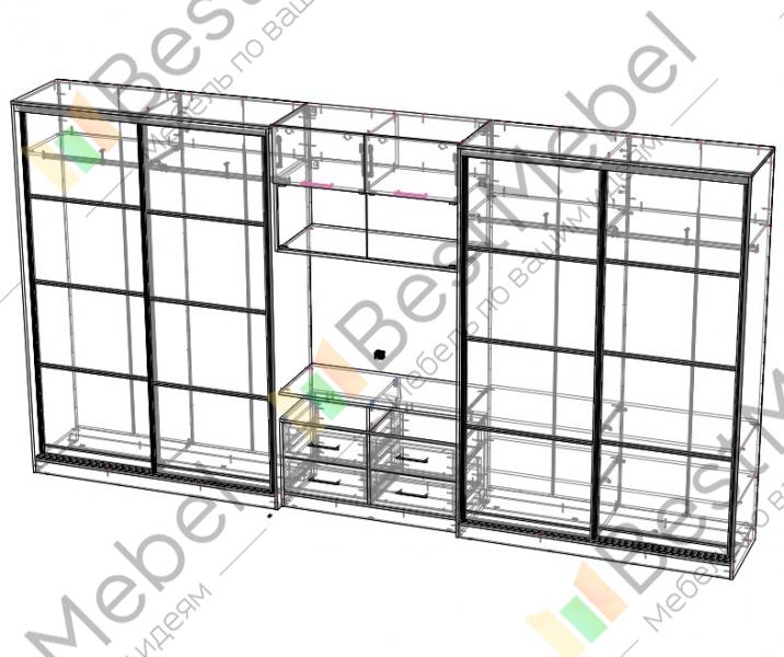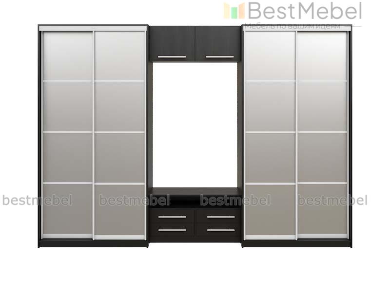 Стенка в гостиную Азимут 2 BMS, выполненная в эффектном сочетании матированного стекла и поверхностей в насыщенном древесном оттенке венге, гармонично дополнит современные минималистичные интерьеры. Крупногабаритная конструкция, размещенная вдоль всей стены, позволит экономно использовать полезную площадь, одновременно оформив зону ТВ и разместив вещи. Два симметрично расположенных шкафа-купе дополнены тумбой с выдвижными ящиками, нишей и распашной антресолью. Купить стенку в гостиную Азимут 2 BMS вы сможете по лучшей цене в нашем интернет-магазине.