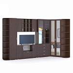 Стенка в гостиную Лада 4 BMS предназначена для меблировки просторных помещений и отличается респектабельным дизайном в современном классическом стиле. Угловая композиция с рамочными фасадами в элегантном темном венге включает в себя распашной шкаф для одежды, комбинированный книжный шкаф, бельевой пенал, секцию с тумбой под ТВ и антресольной полкой и торцевые радиусные стеллажи. Дополнят стенку широкий комод и журнальный столик. Купить стенку в гостиную Лада 4 BMS и организовать комфортное пространство вам поможет наш интернет-магазин.