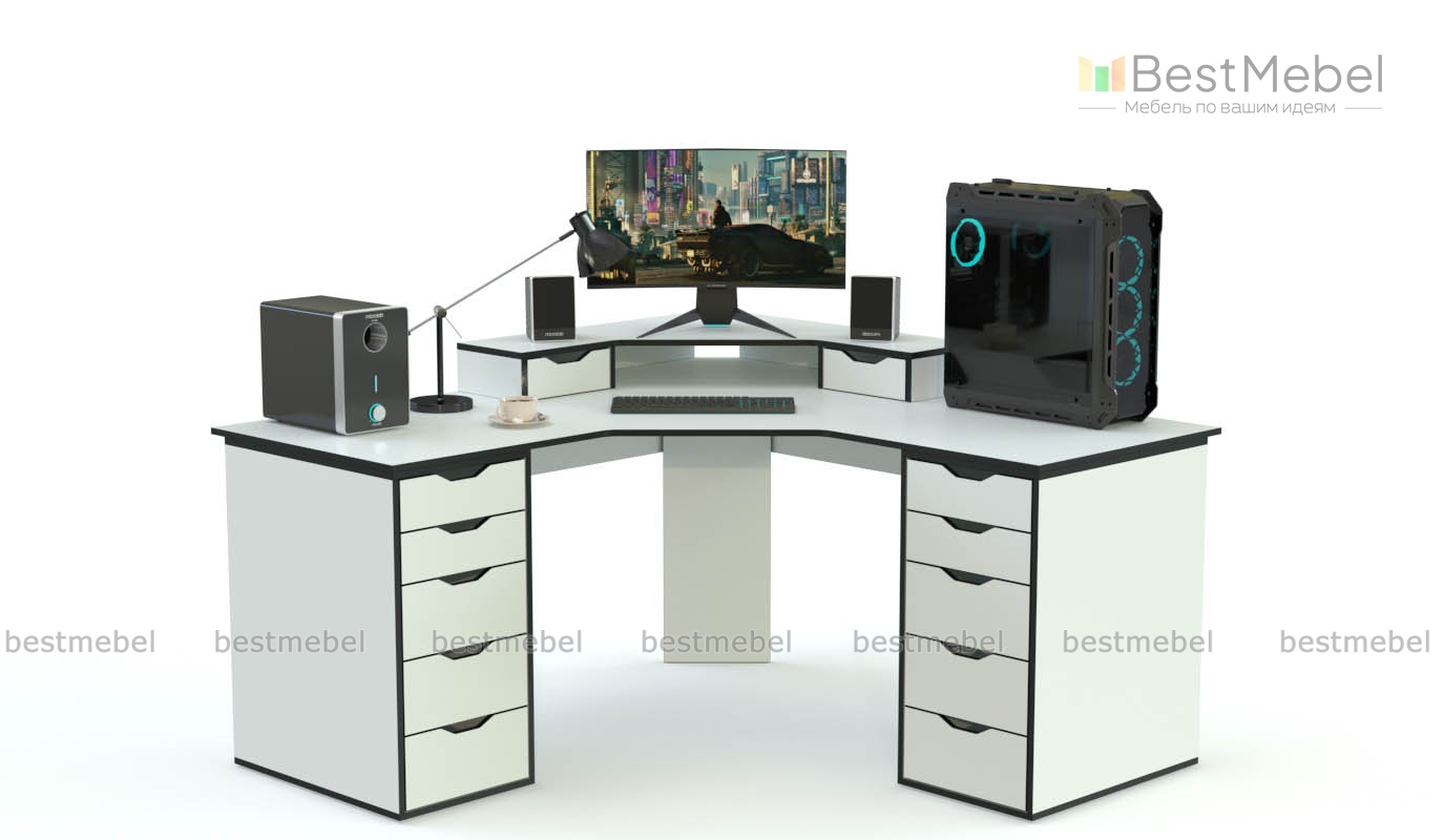 Геймерский стол Ньютон-4 BMS экономит пространство за счет угловой конструкции, а продуманная система хранения позволит разместить в быстром доступе все необходимые рабочие материалы и аксессуары. Двухтумбовая модель оборудована просторной столешницей с надстройкой под монитор и выдвижными ящиками разных размеров, оснащенными удобными ручками-вырезами. Купить геймерский стол Ньютон-4 BMS вы сможете в нашем интернет-магазине, подобрав гармонирующее с интерьером цветовое решение.