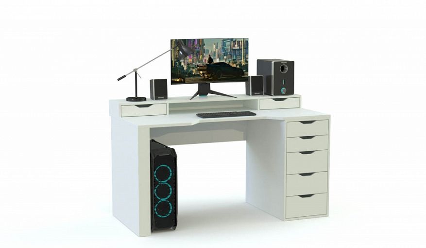 Игровой стол Баль-3 BMS выполнен в универсальном белом оттенке и органично вписывается в минималистичные интерьеры. Столешница с трапециевидным вырезом дополнена надстройкой, на которой разместятся на удобной высоте монитор и периферийные устройства. Для хранения сопутствующих аксессуаров и рабочих материалов предусмотрена тумба с двумя малыми и тремя большими выдвижными ящиками. Купить игровой стол Баль-3 BMS вы сможете в нашем интернет-магазине с выбором цвета по каталогу.